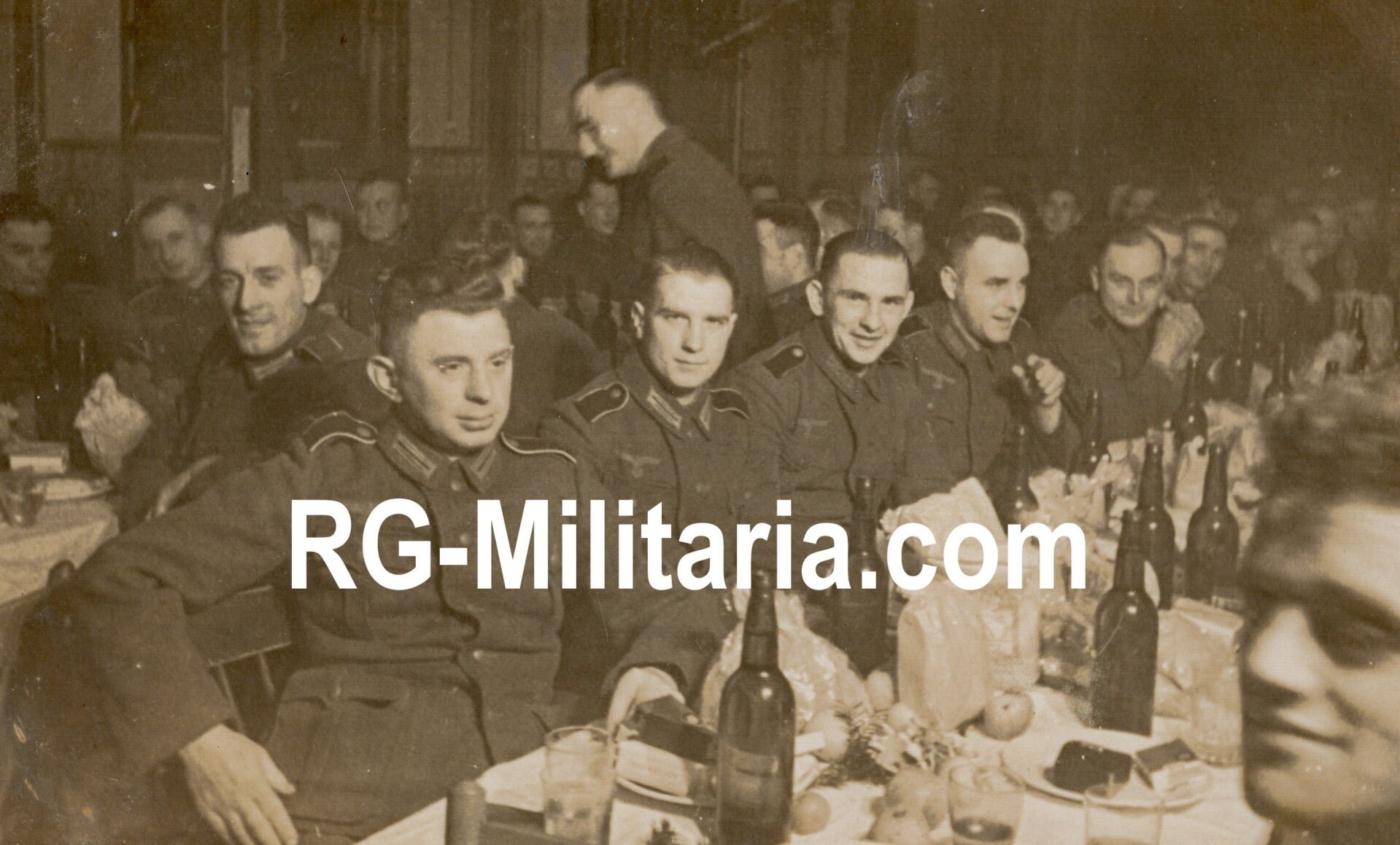 Original WW2 German Photo - German soldiers drinking together, IJmuiden, HollandApproximately 8 x 14 cmFoto Hollywood, IJmuiden OostOriginele WO2 Duitse Foto - Duitse militairen met kerst, IJmuiden, NederlandOngeveer 8 x 14 cmFoto Hollywood, IJmuiden Oost.