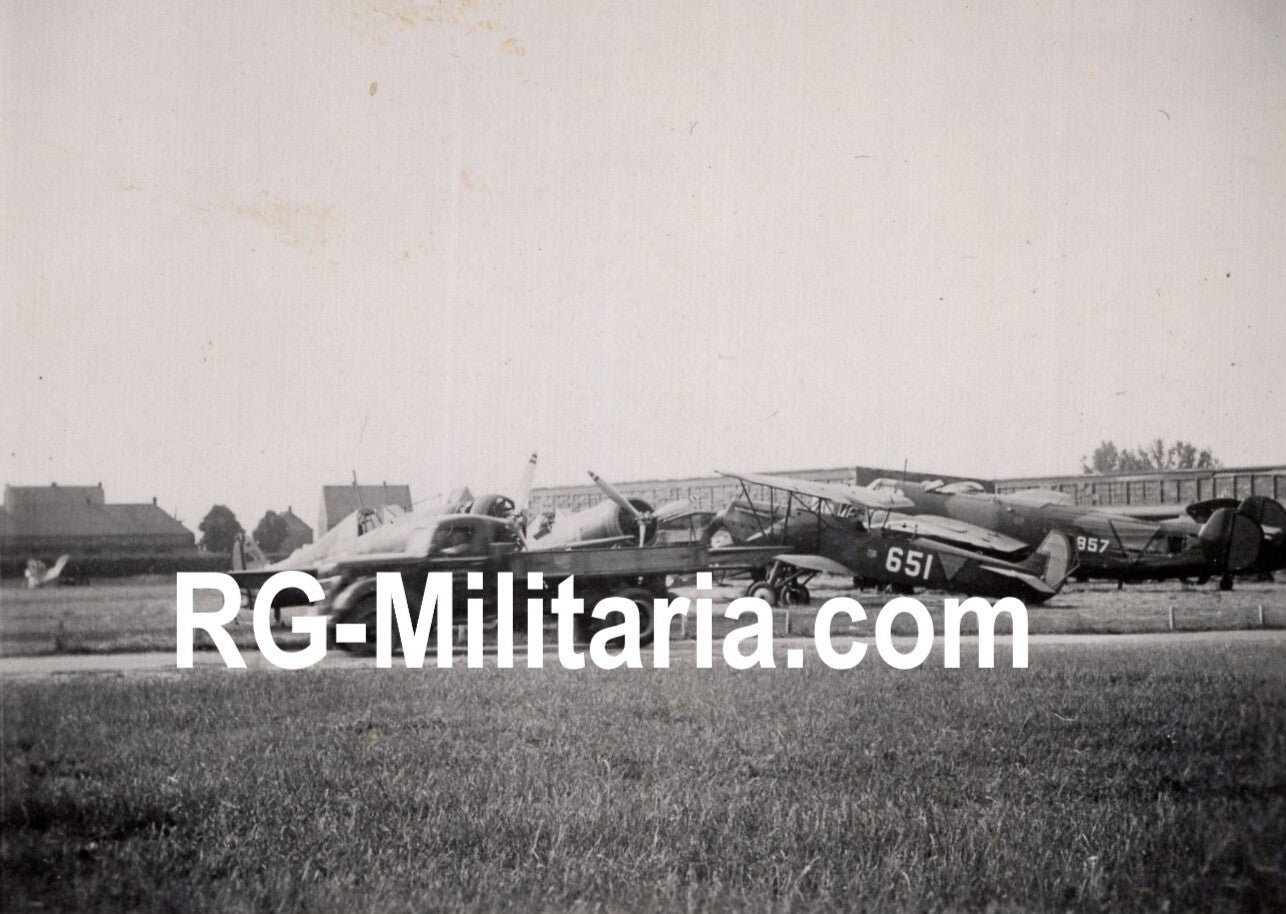Original WW2 German Photo - Dutch LVA Fokker airplanes with a Fokker TV bomber at Schiphol Amsterdam (1940)Approximately 6 x 7 cmVery rare picture of the Dutch LVA (Luchtvaartafdeeling) airplanes that were placed at the Dutch airfield Schiphol in Amsterdam. From left to right, two Fokker D21 airplanes, Fokker C5 Hispano (651), and a Fokker T5 (857) in the back.Originele Wo2 Duitse Foto - Nederlandse LVA Fokker vliegtuigen bij Schiphol Amsterdam (1940)Ongeveer 6 x 7 cmZeer zeldzame foto van de Nederlandse LVA (Luchtvaartafdeeling) vliegtuigen die op vliegveld Schiphol in Amsterdam stonden opgesteld. Van links naar rechts: twee Fokker D21's, een Fokker C5 Hispano (651) en een Fokker T5 (857) op de achtergrond.
