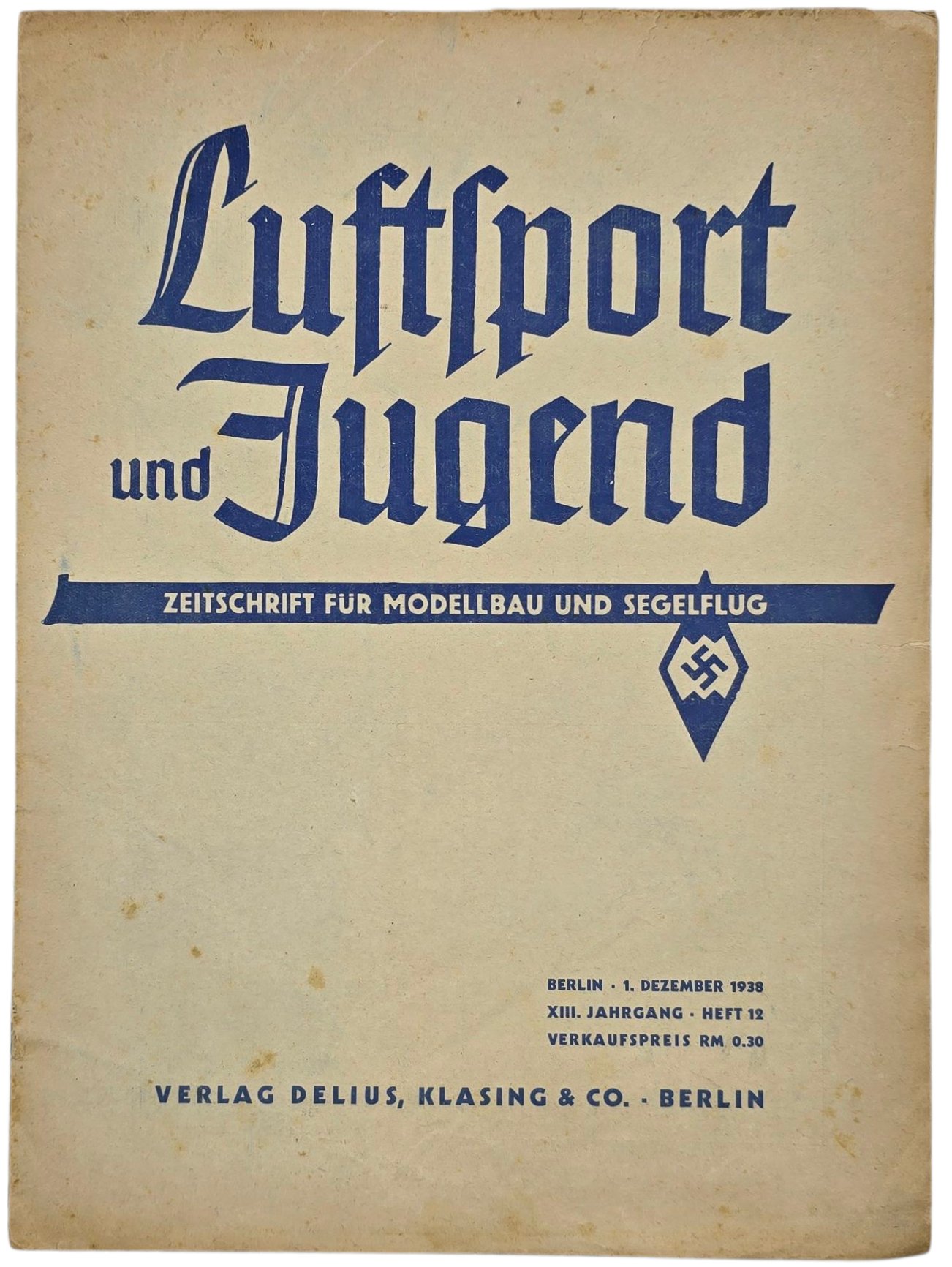 Original WW2 German Magazine - Luftsport und Jugend, 8th Year No 12 (1938)Hitlerjugend Segelflug.Origineel Wo2 Duits Tijdschrift - Luftsport und Jugend, 8ste Jaargang No 12 (1938)Hitlerjugend Segelflug.
