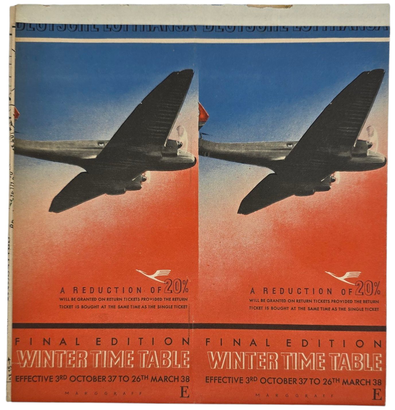 Original WW2 German Document - Deutsche Lufthansa Winter Time Table 3rd October to 26th March (1938)