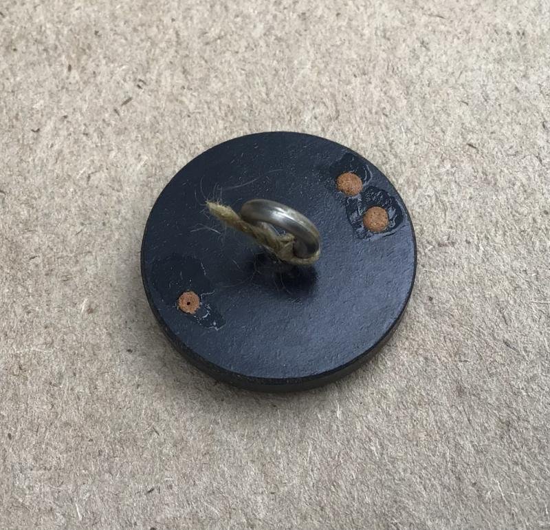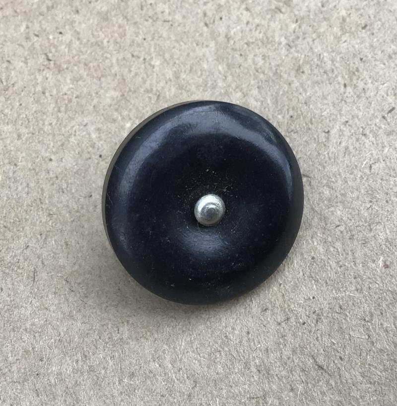 Black bakelite button with integral magnetised section. Small dots on the reverse of the button indicate North and South. When suspended by a thread the button could be used by an evading or escaping airman to head for neutral territory. Excellent condition.
