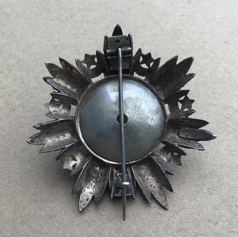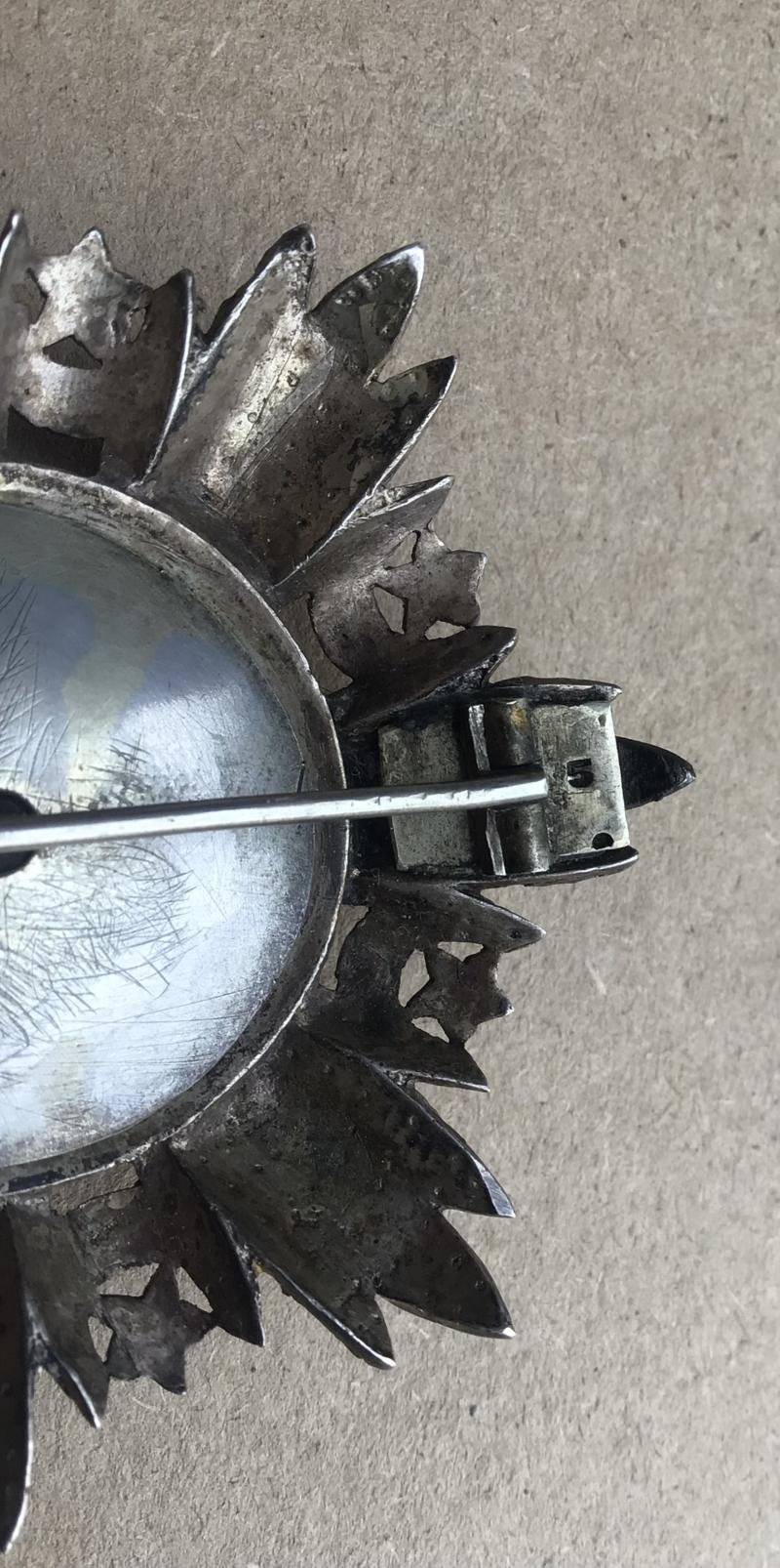Silver and enamels. Approx 63x63mm. With a thin brooch pin to the reverse. The reverse also with some scratches marks. The hinge of pin maker marked '5'.