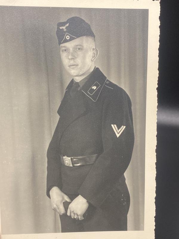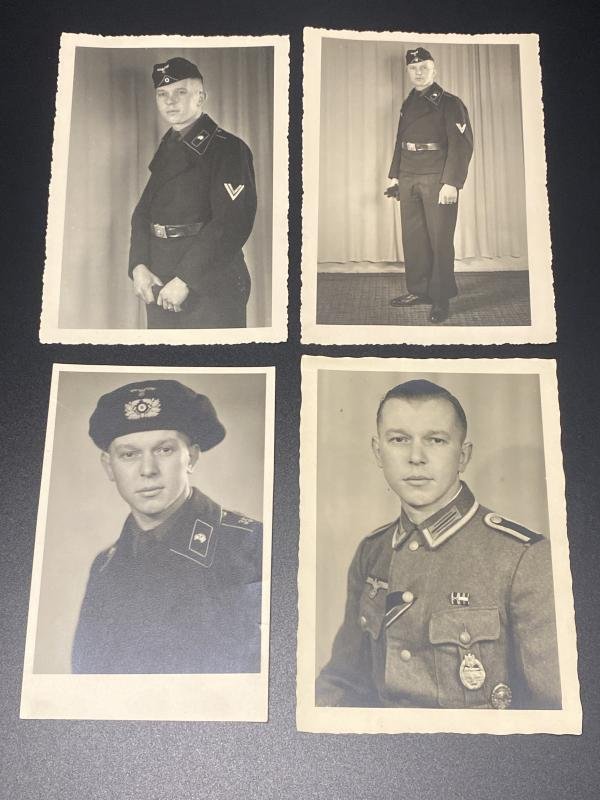 Original group of four 6X4 Inch Panzer crew Portraits all to the same man. Three of the man in panzer wrap and one in regular uniform. All relating to the 35th Panzer Regiment. All in good condition without damage.