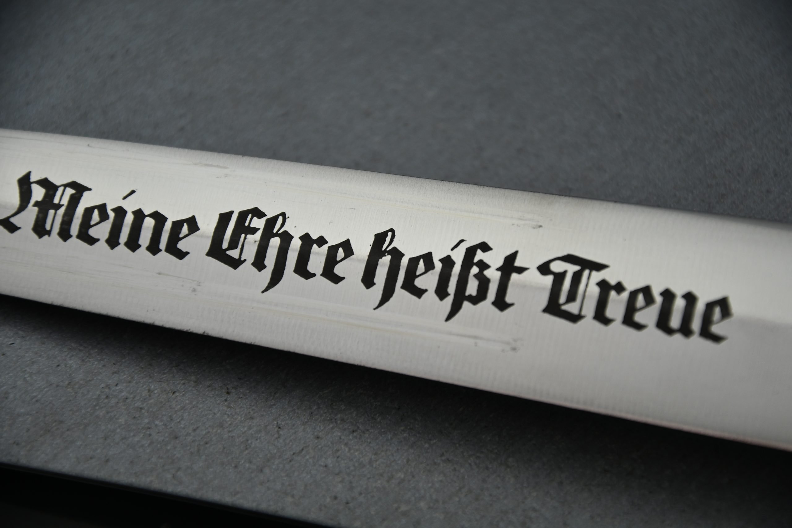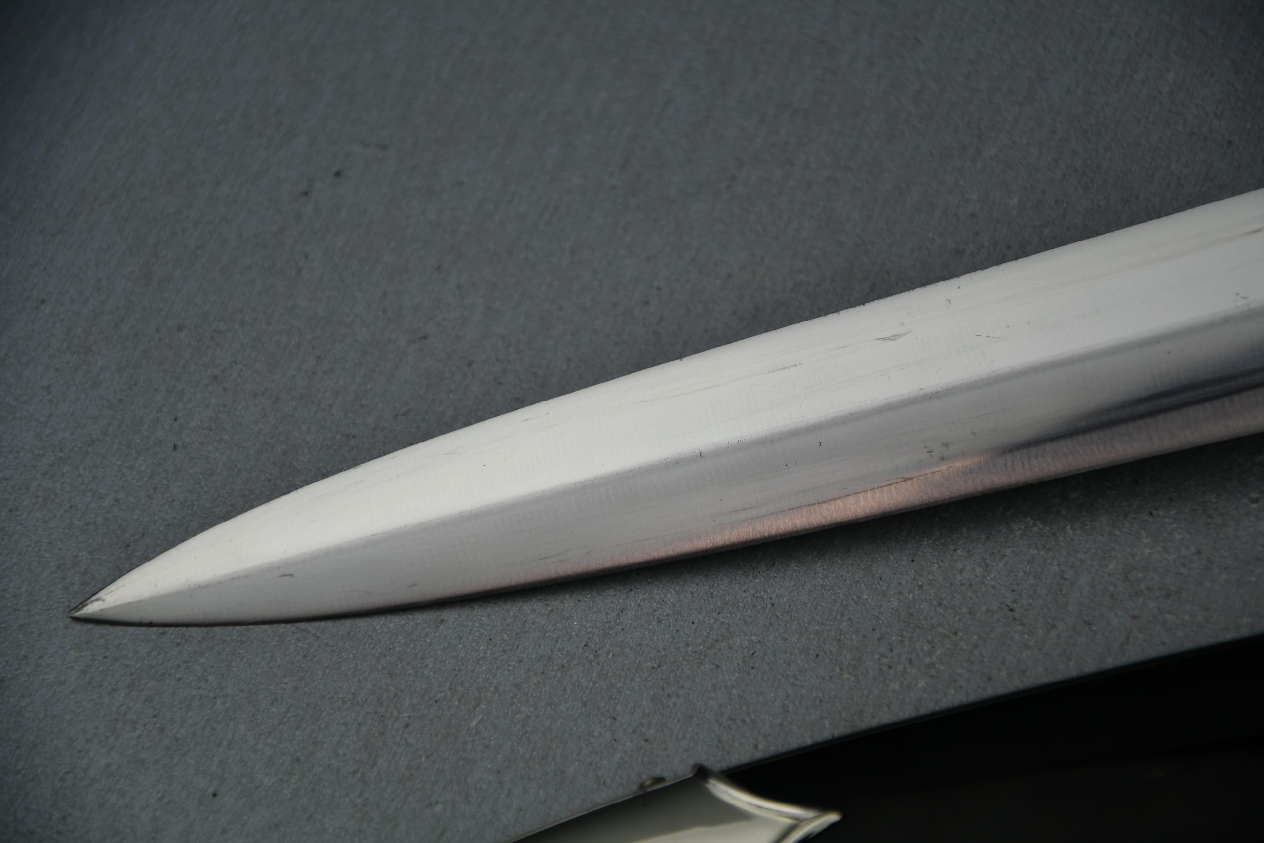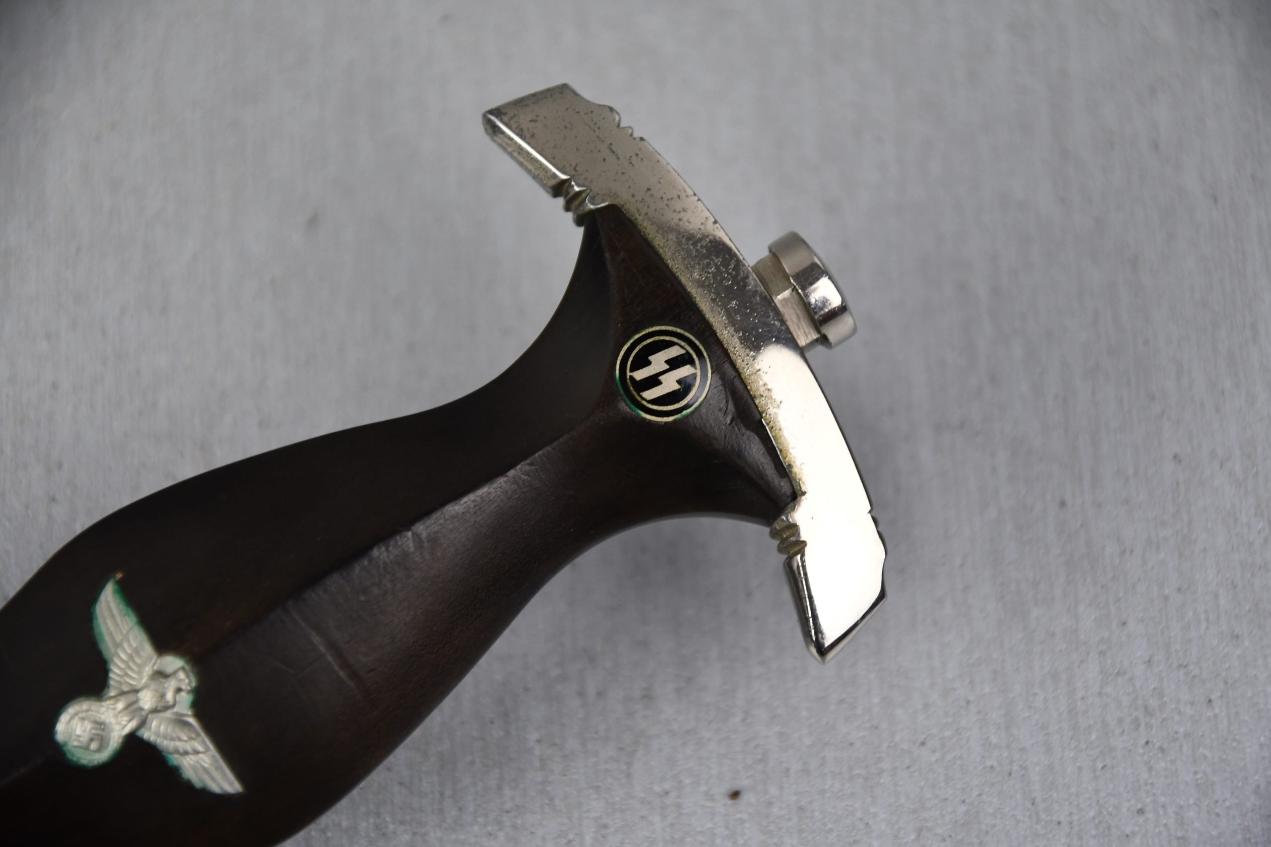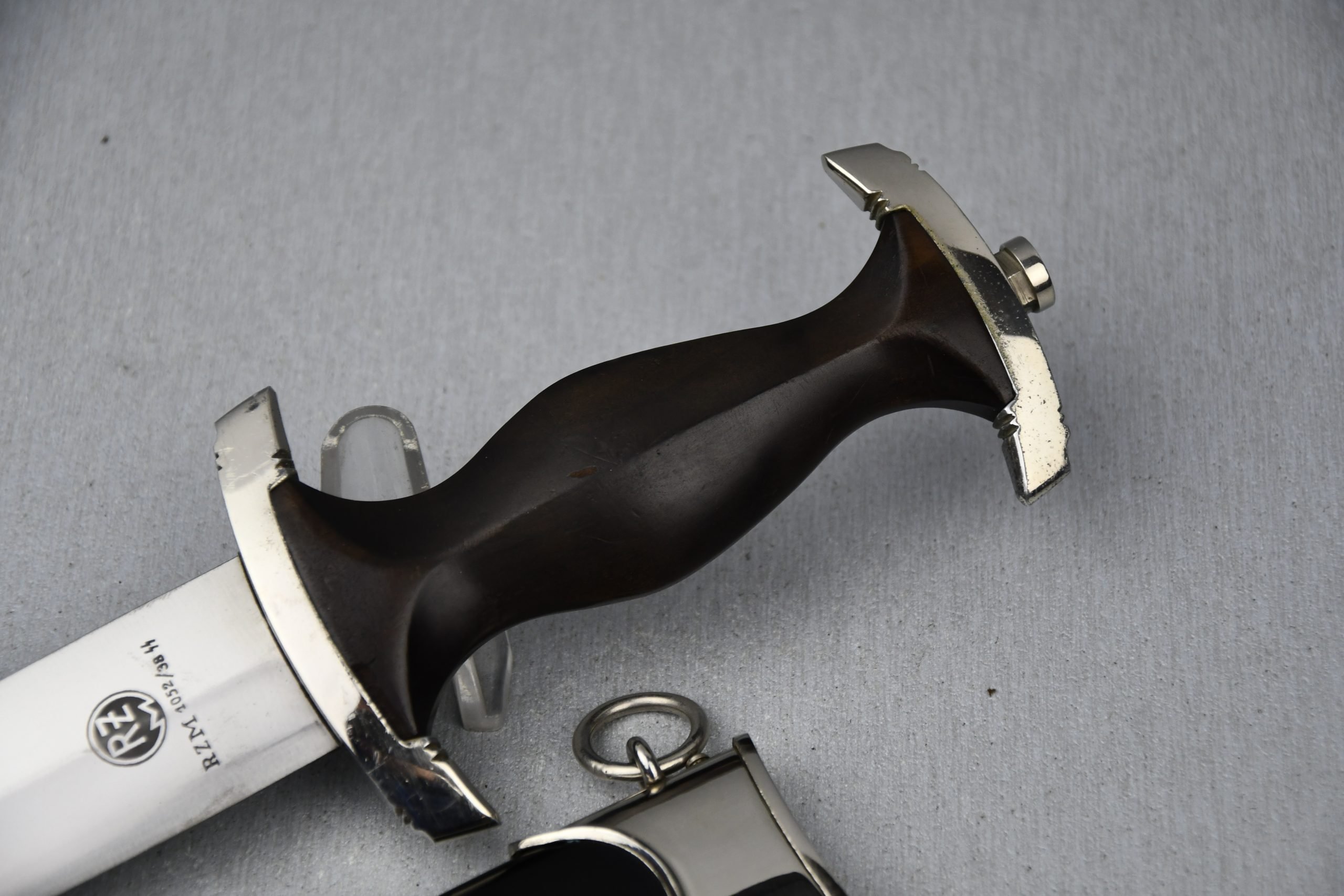 Stunning unworn โ MINT โ M33 pattern SS dagger in pristine condition. Blade is perfect, shows nice cross graining and only light runner marks. Maker marked by RZM 1052/38 SS, which is attributed to Pumawerk, Solingen, a rarely encountered manufacturer! Eagle on the grip shows nice patina and green patina. This is by far the best SS dagger I had in while that is so perfect and unissued โ impossible to upgrade this example.SHIPPING ONLY IN MAINLAND EUROPE โ COULD BRING THIS TO USA WHEN I FLY OVER