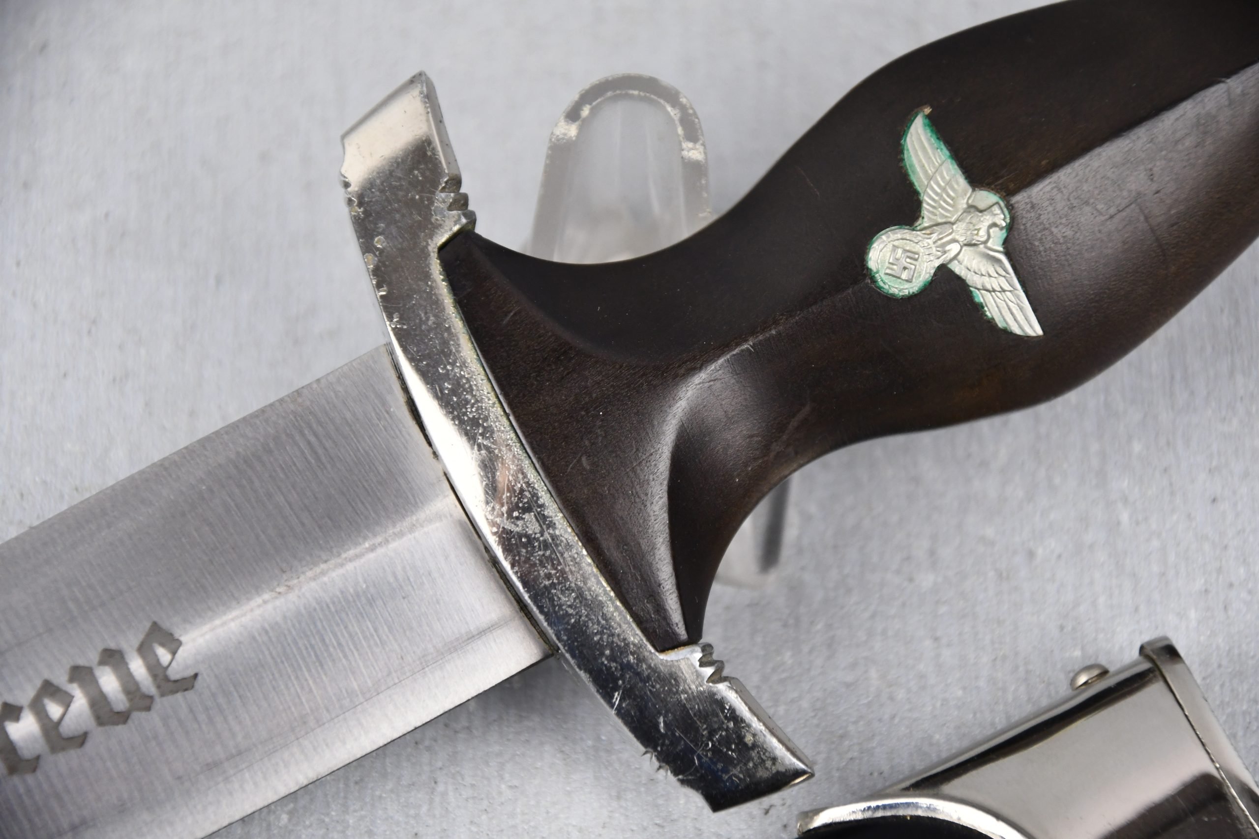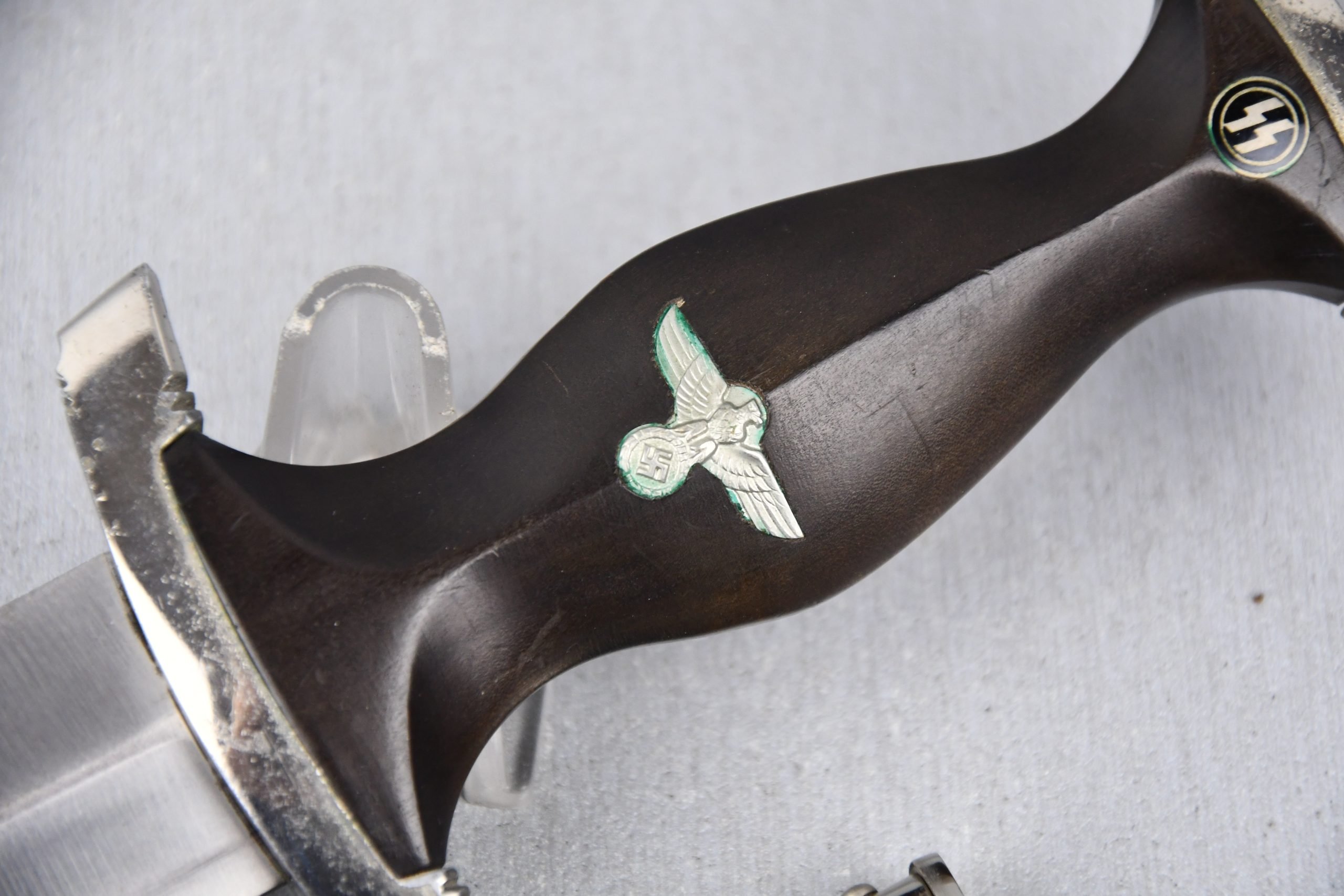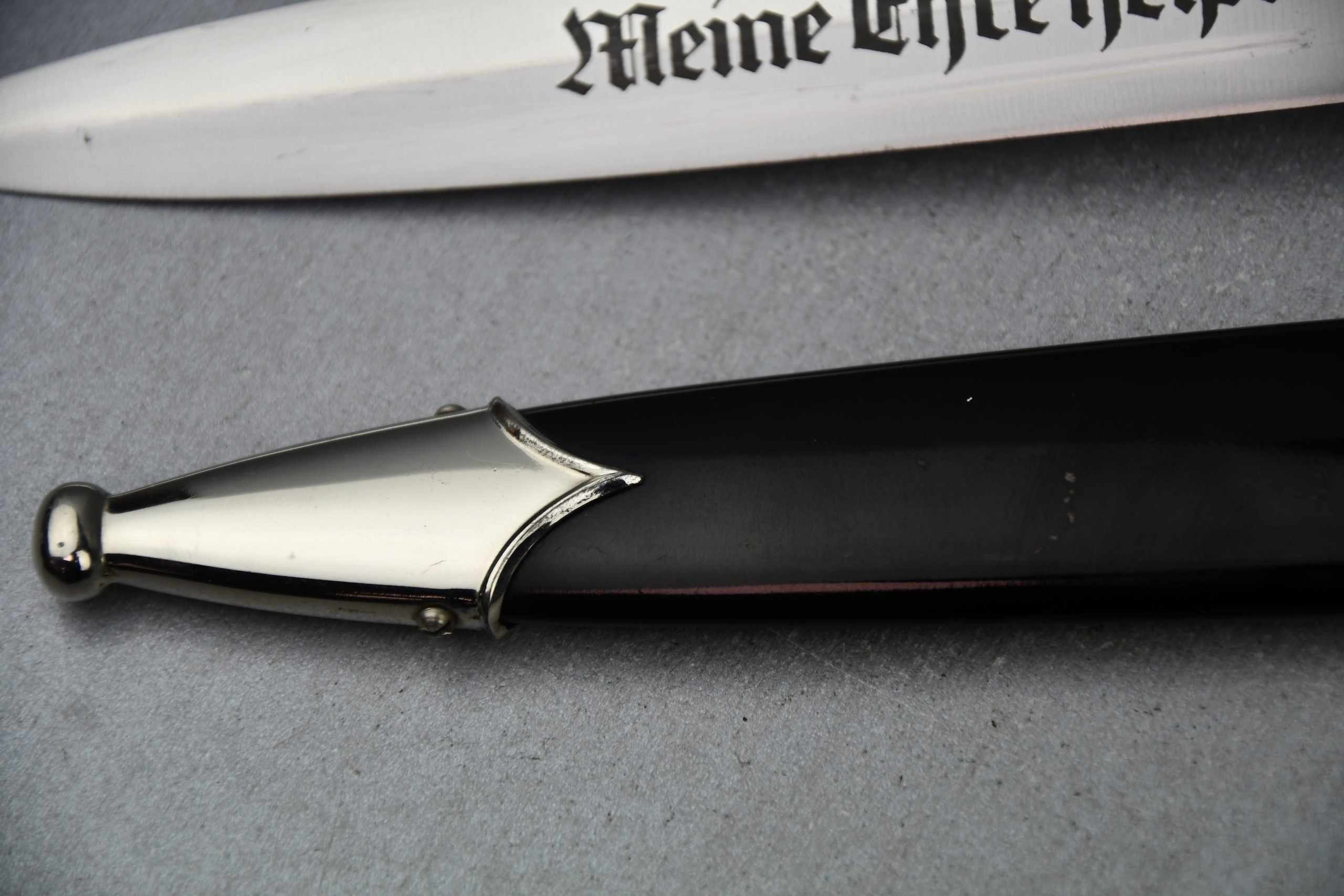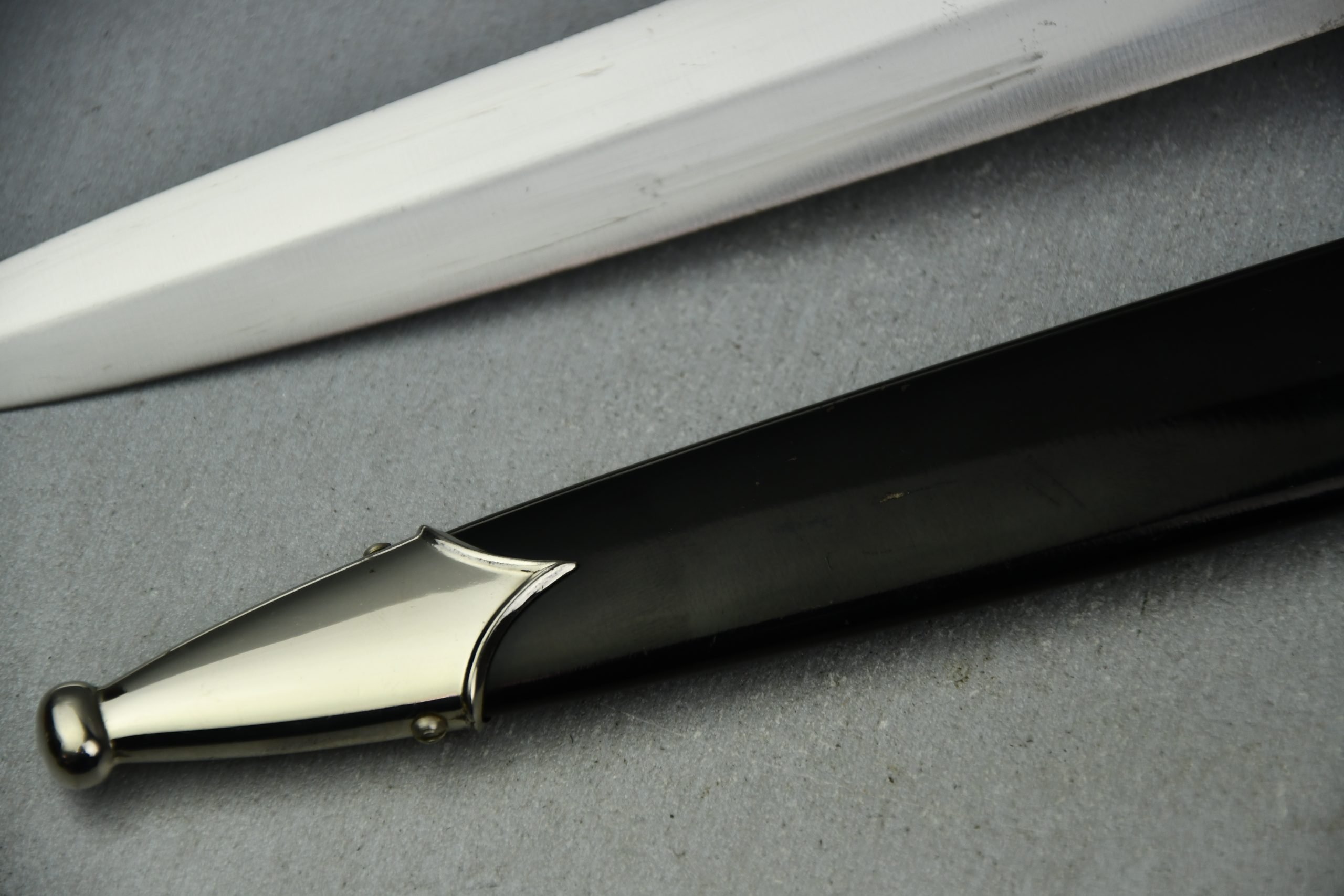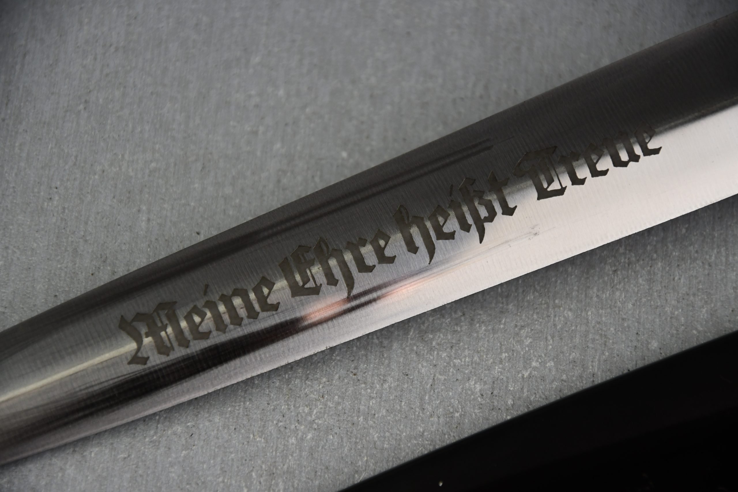 Stunning unworn โ MINT โ M33 pattern SS dagger in pristine condition. Blade is perfect, shows nice cross graining and only light runner marks. Maker marked by RZM 1052/38 SS, which is attributed to Pumawerk, Solingen, a rarely encountered manufacturer! Eagle on the grip shows nice patina and green patina. This is by far the best SS dagger I had in while that is so perfect and unissued โ impossible to upgrade this example.SHIPPING ONLY IN MAINLAND EUROPE โ COULD BRING THIS TO USA WHEN I FLY OVER