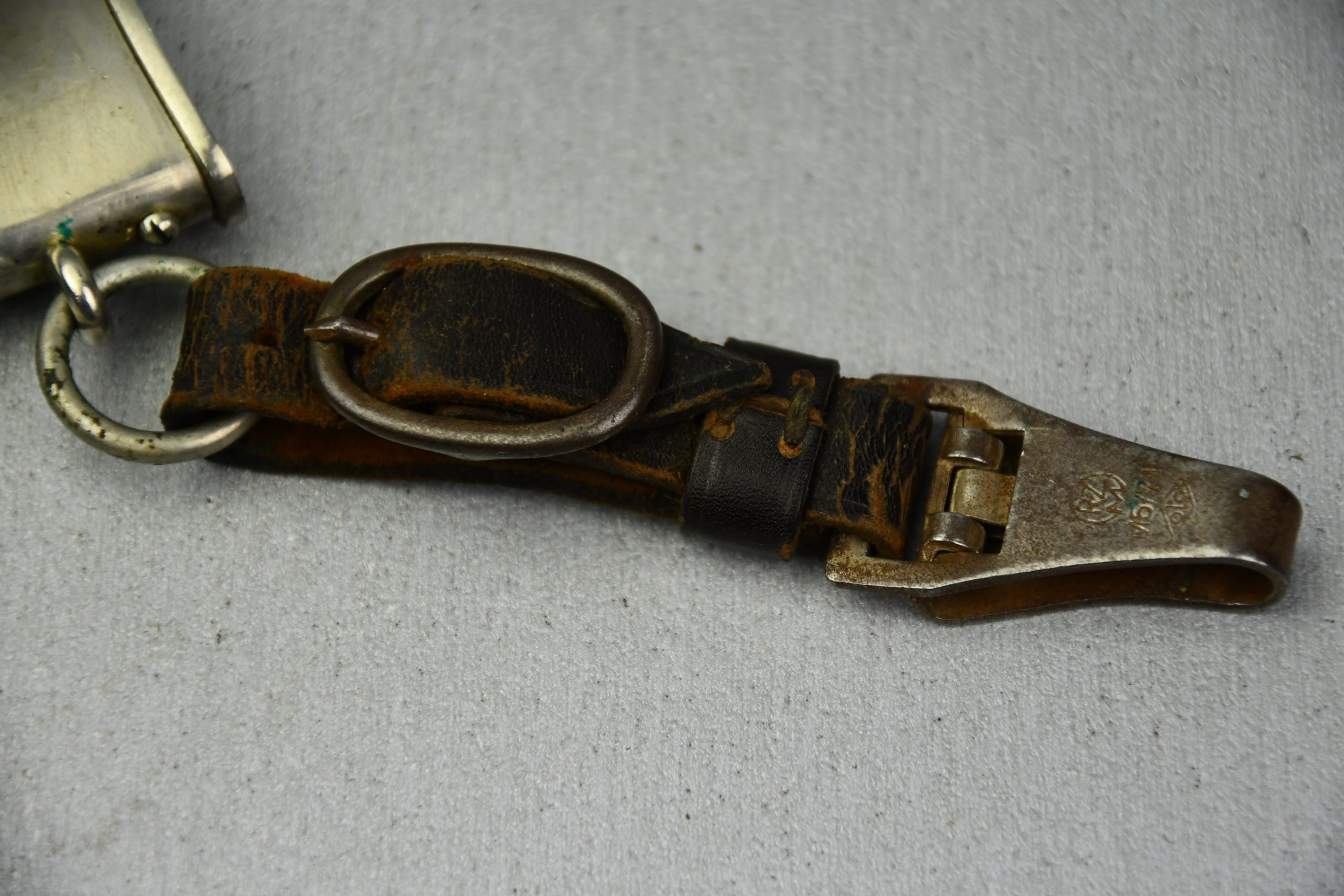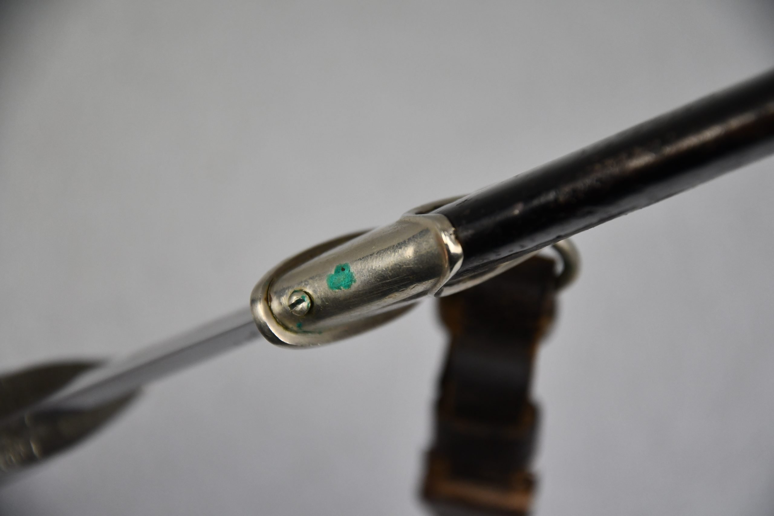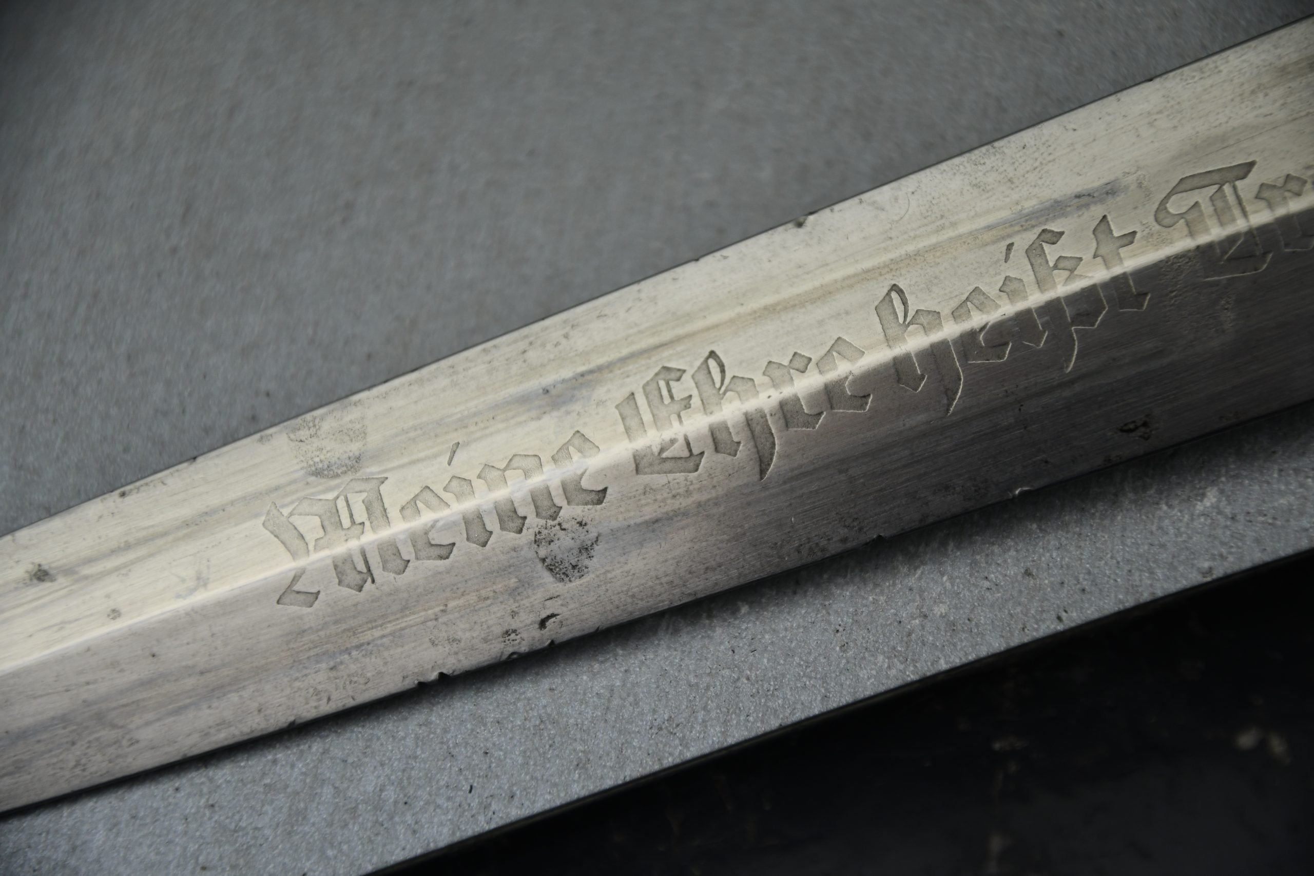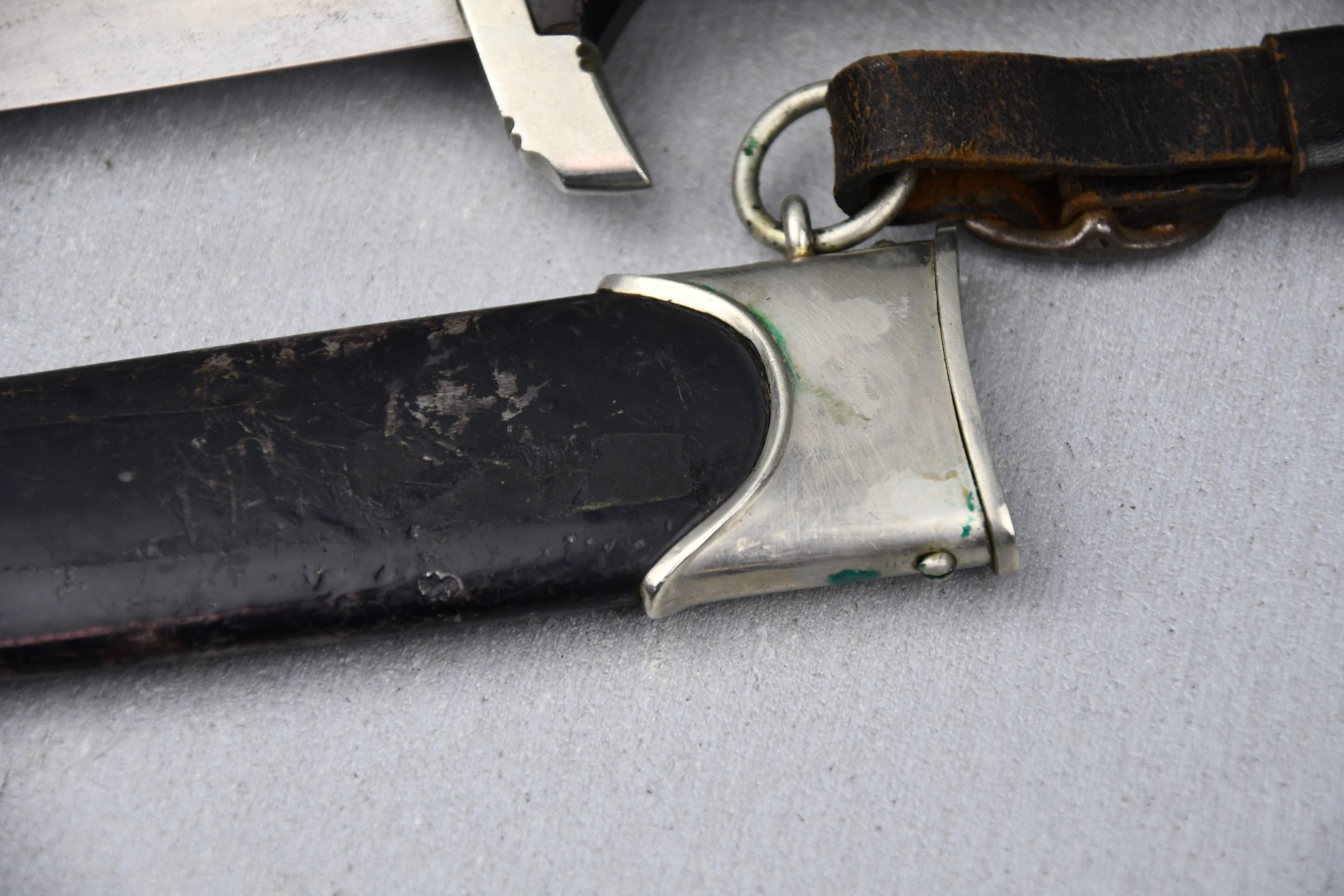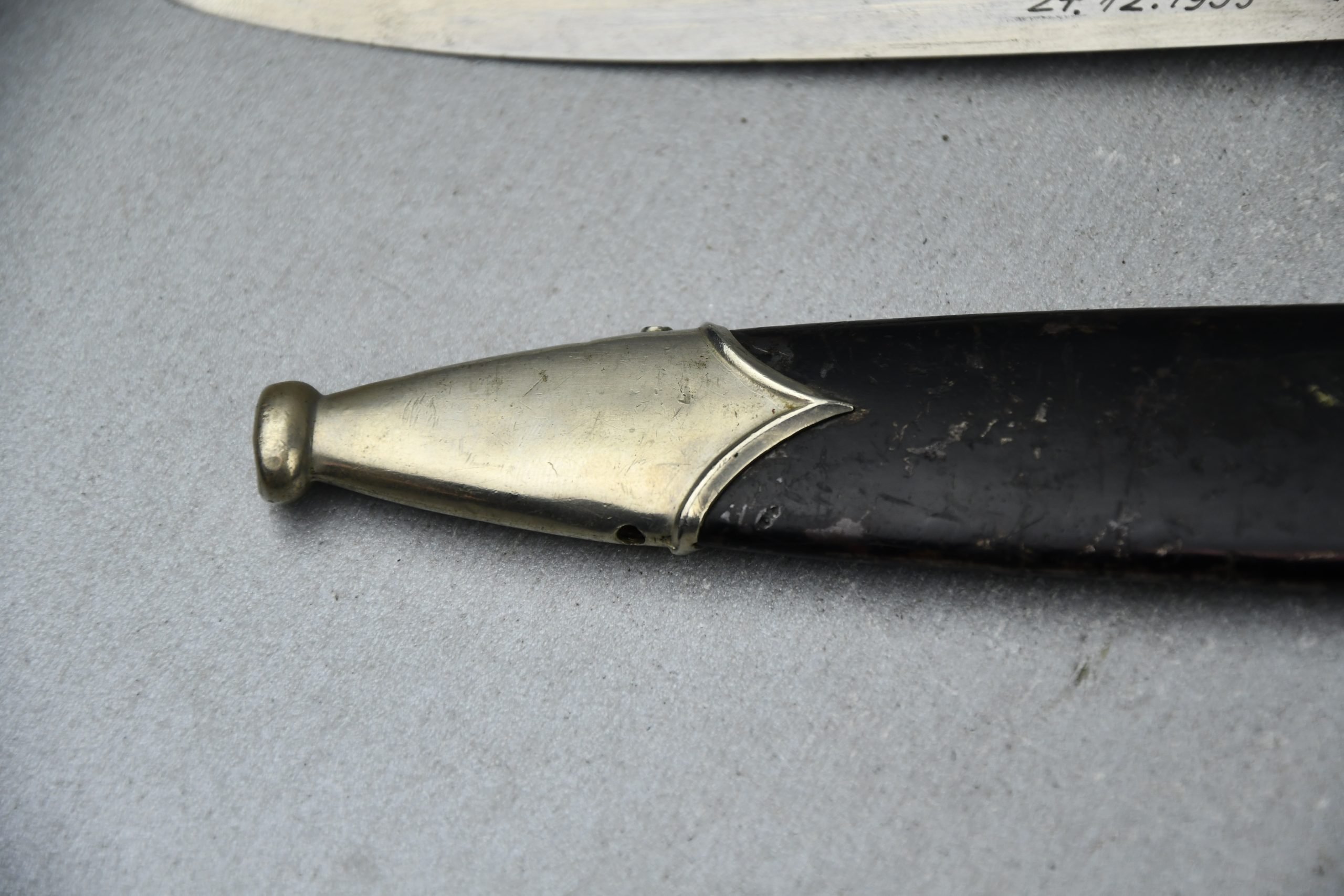 Untouched M33 pattern black colored SS dagger in good condition. The SS dagger is an early example with nickel parts and has roman number I on the cross guard. The blade is worn and maker marked by Carl Eickhorn Solingen. The front of the blade shows the SS motto Meine Ehre heist Treue, etched on it. The best thing is of course te dedication engraved with the text; 'Bleib wie Du bist, Dein Ustf. Eckardt 24.12.1935' (Stay as you are, Your SS-Untersturmfรผhrer Eckardt 24.12.1935), wich must have been a Christman present based on the date. Comes with its original black leather hanger, maker marked RZM M5/71 OLC. The bottom of the crossguard shows the SS soldier's ID number as well, could be a nice research project. Solid early SS dagger with no remarks, a true investment piece that looks great!SHIPPING ONLY IN MAINLAND EUROPE โ COULD BRING THIS TO USA WHEN I FLY OVER