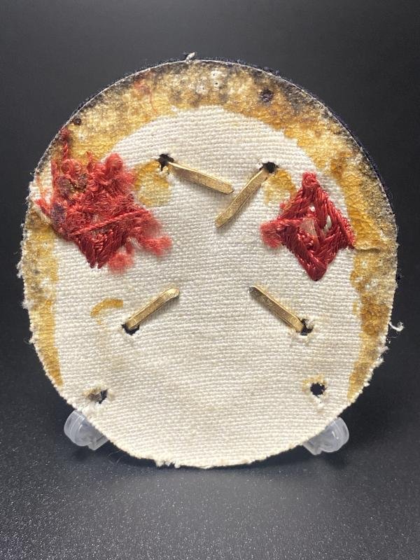 Original German Kriegsmarine Senior Signalmans Sleeve patch. Metal insignia with embroidered flags, on black wool backing.