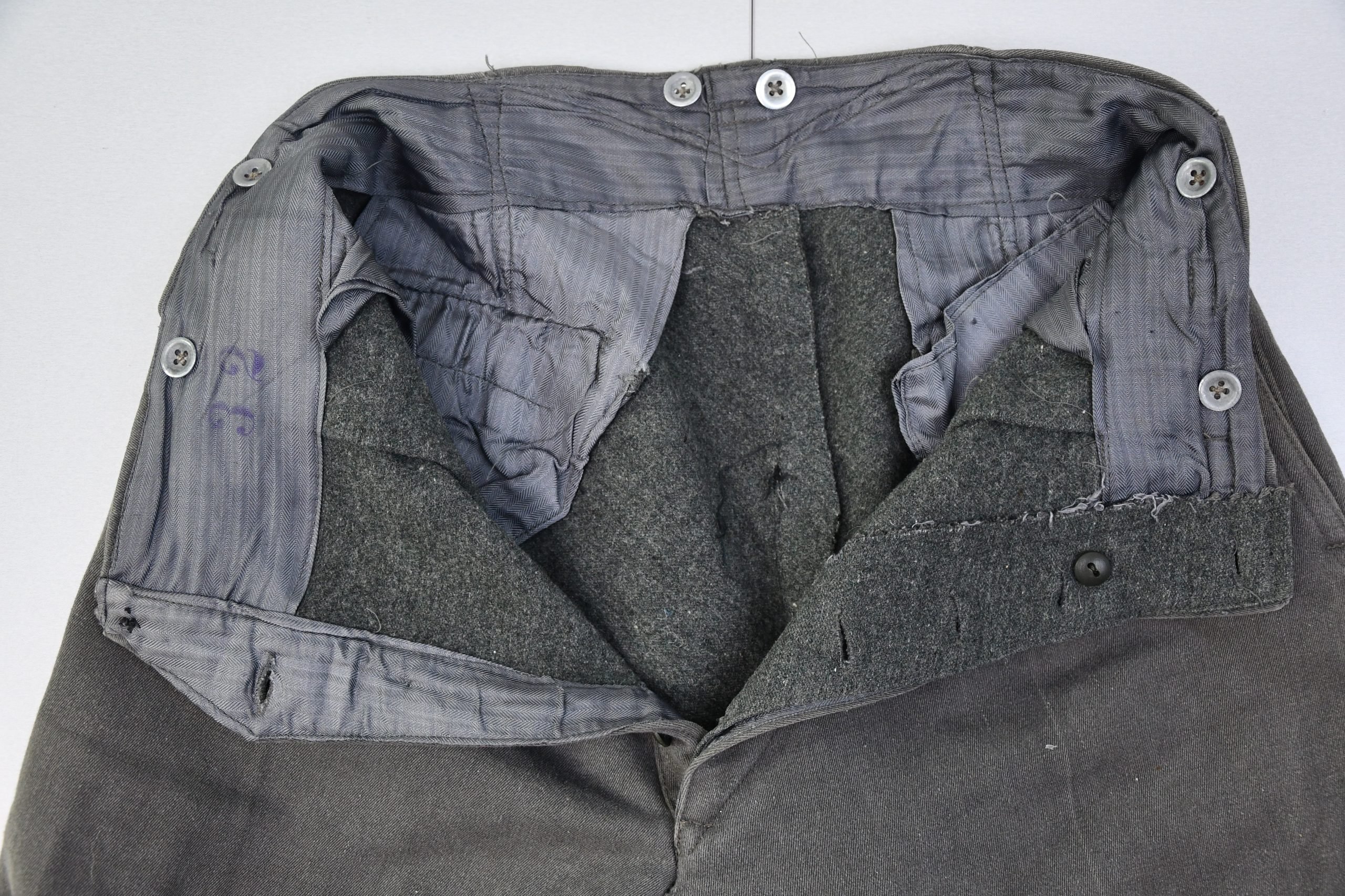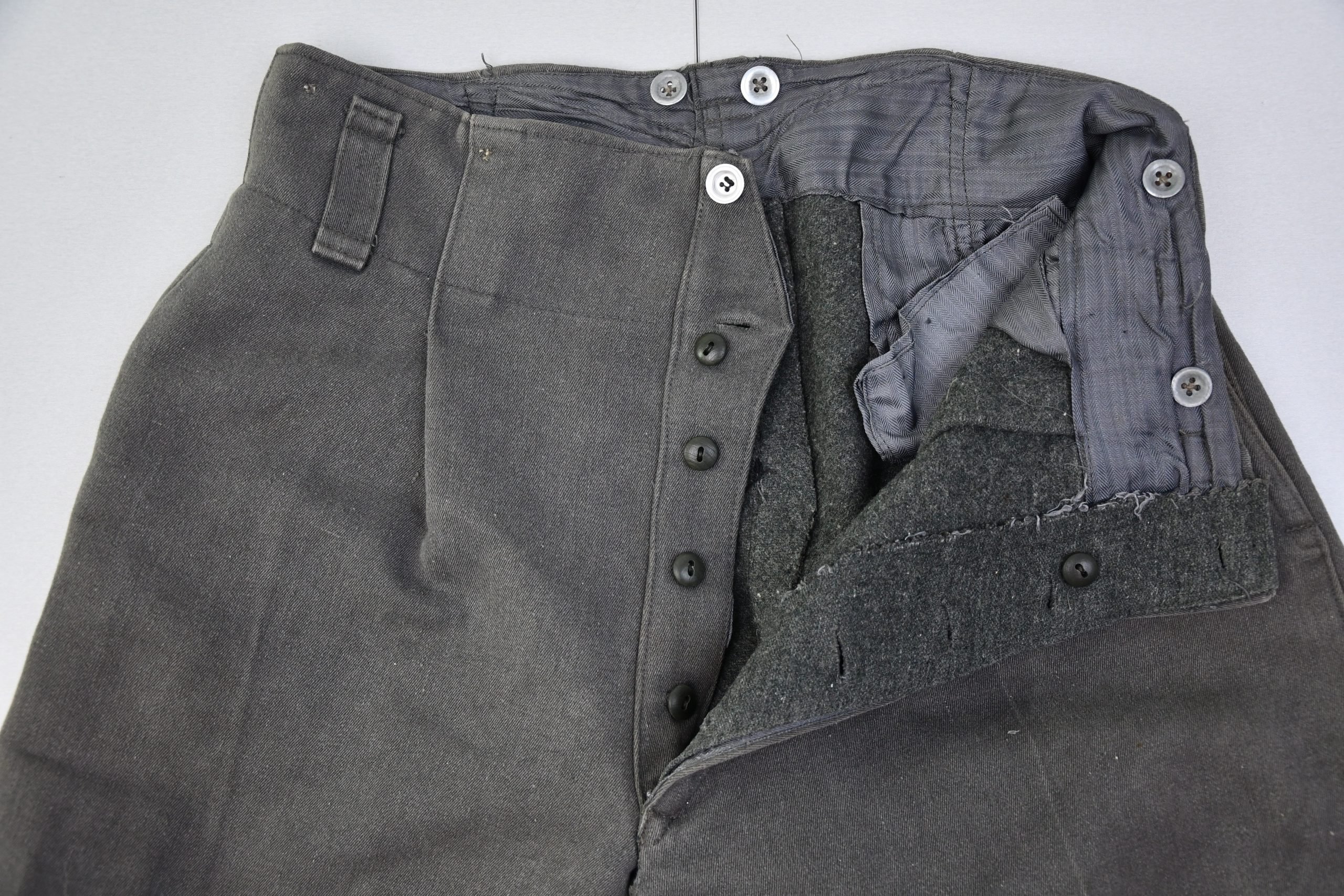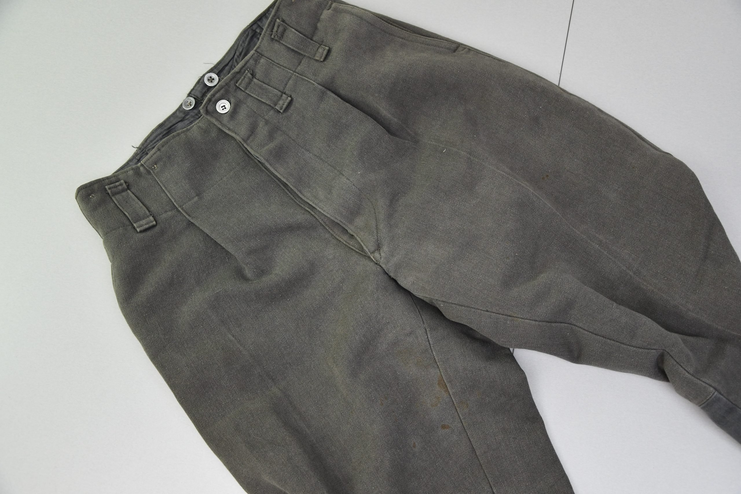 Waffen-SS Gabardine Officer's Breeches (Stiefelhose fΓΌr Offiziere). Made of high quality Italian gabardine. Typical German-style ankle ties original and full length. The breeches are in very good condition, showing only some minor damages from wear. Liner made out of classic SS-style hbt lining materal. Nice and hard to find original pair of Waffen-SS breeches in very good condition!