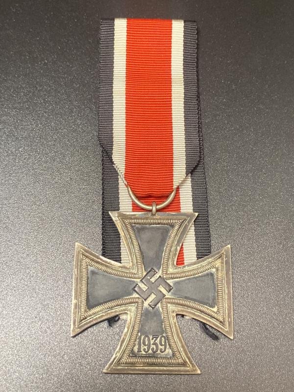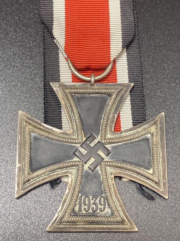 Original Third Reich Iron Cross second class maker marked 27 on the ring for Maria Schenkl. Award in good condition with good finish however it would benefit from a clean. Award comes with a full length of ribbon.