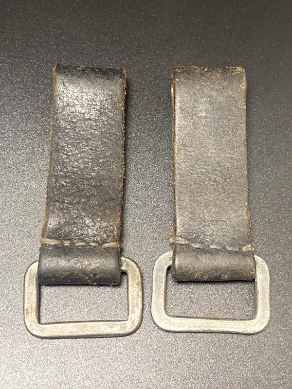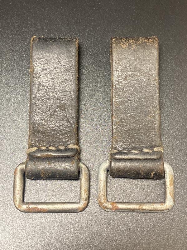 Original WW2 German black leather D rings as used by all branches of the Wehrmacht. Both pieces look to have been made by the same manufacture. Both in good condition with steel rings.