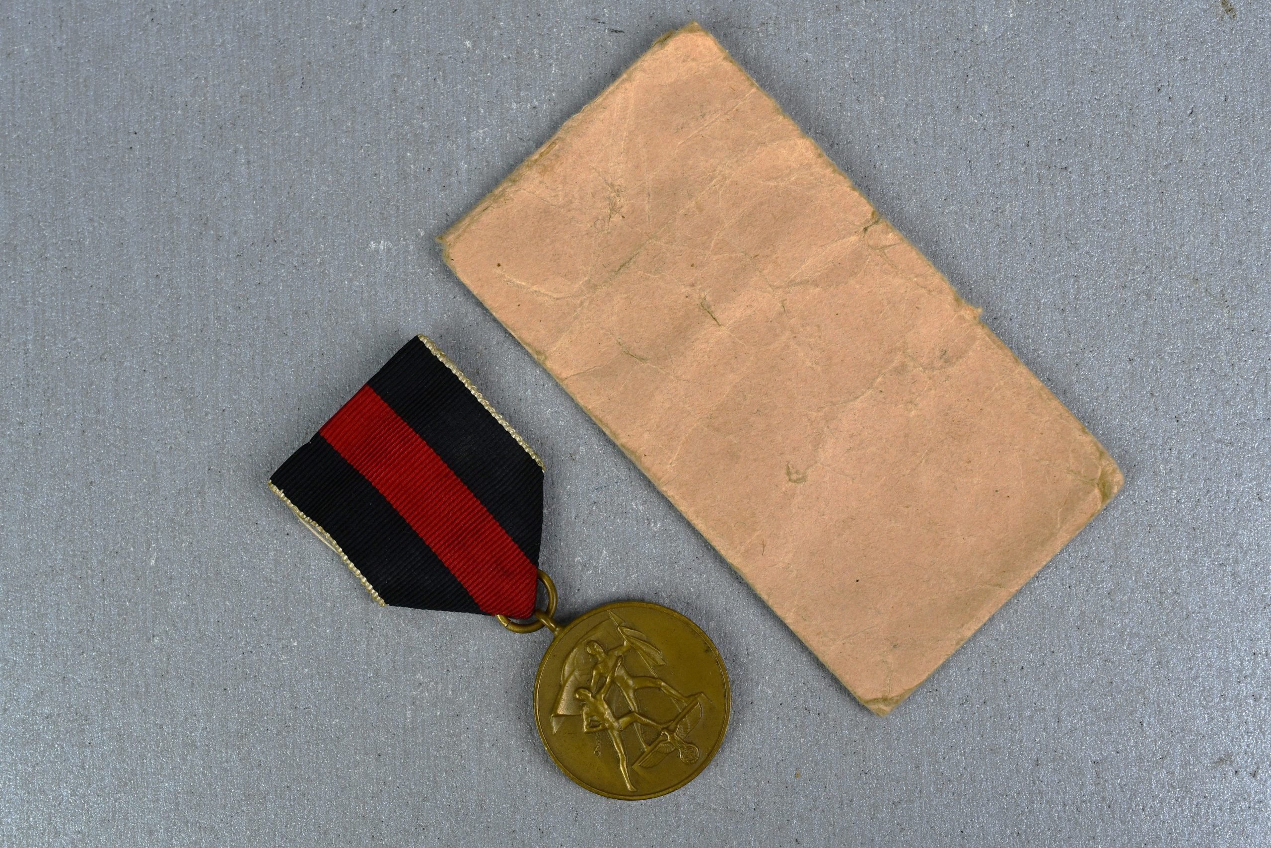 Original medal complete with ribbon. Very good condition. Comes in its original paper etui, maker marked by Wilhelm Deumer, LΓΌdenscheid. The envelope is torn open at the side.