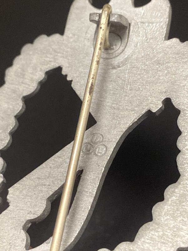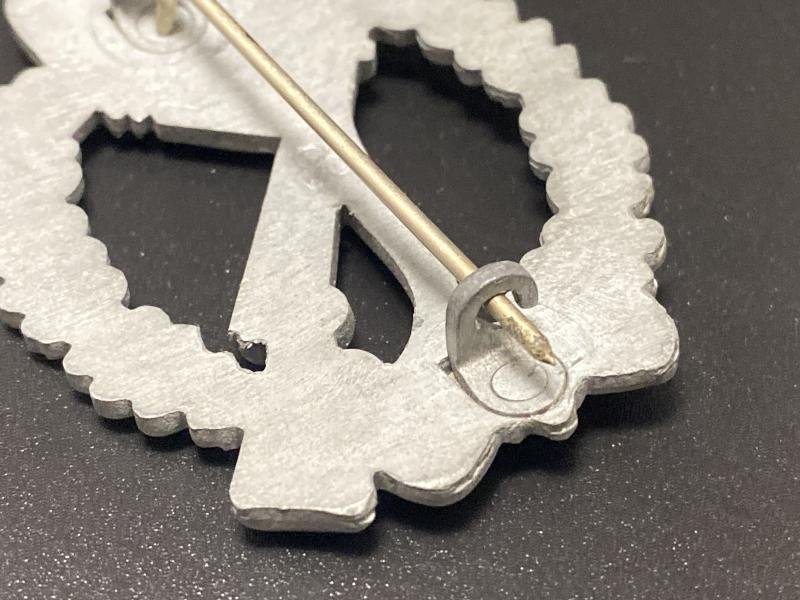 Original maker marked infantry assault badge in silver attributed to Friedrich Linden. Award is in good condition, complete with factory assembled pin, hinge and hook set up on the reverse.