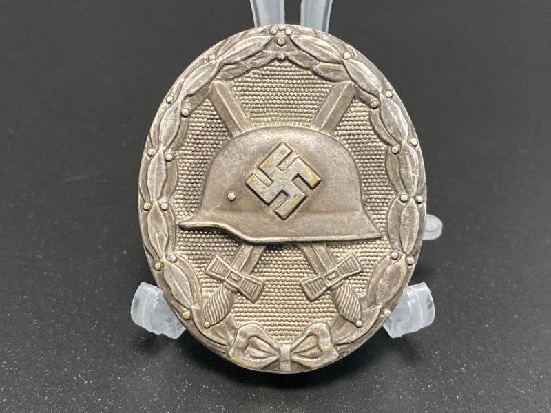 Original early WW2 silver wound badge made in Tombak by Hauptmünzamt Wein. Fairly good amount of original silver finish present.