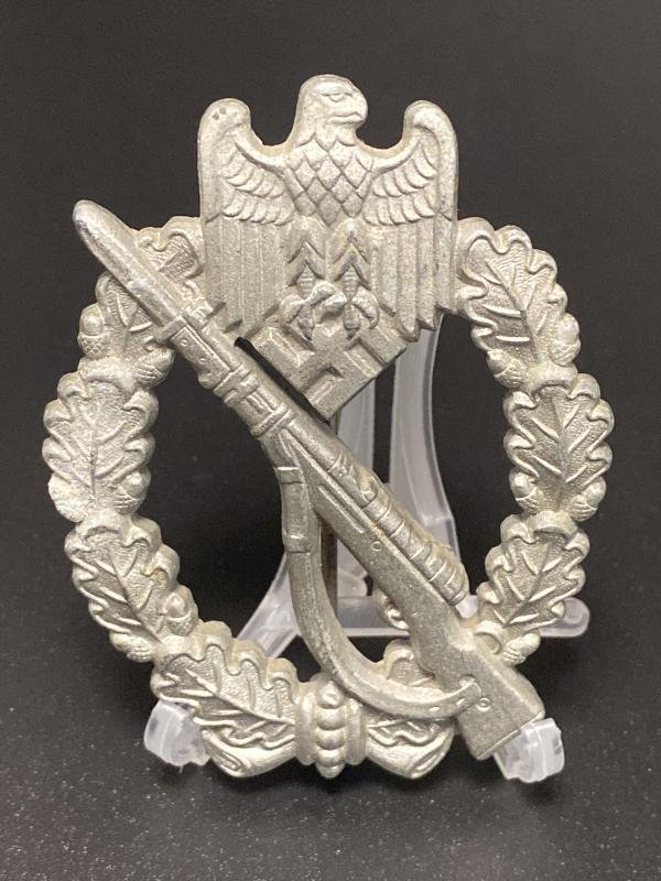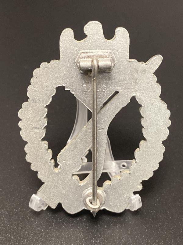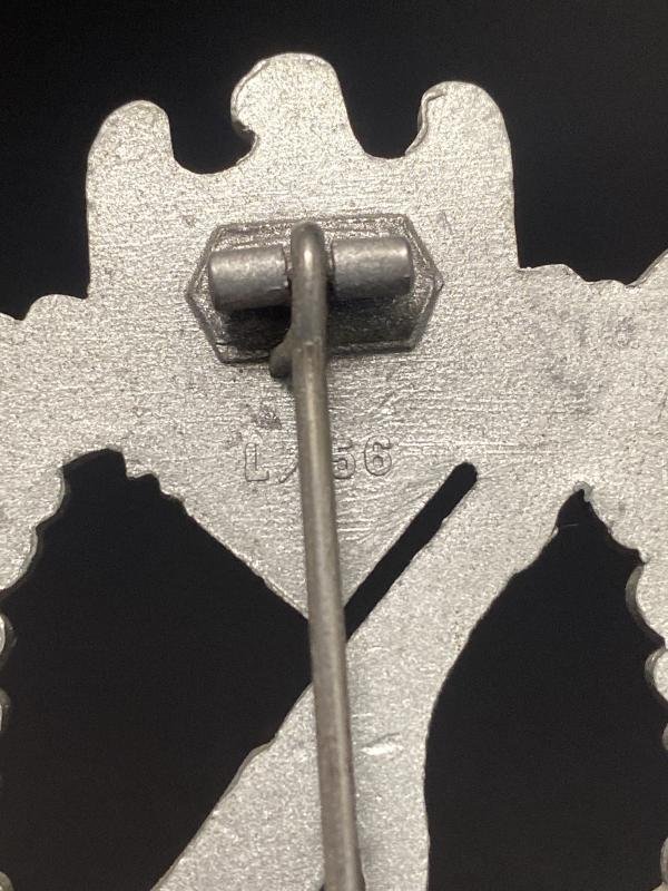 Original Silver Infantry Assault badge made by Funke & Brüninghaus marked L/56 on the reverse. Award in good condition, complete with factory assembled pin, hinge and hook on the reverse. High finish remaining.