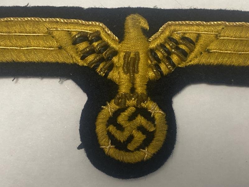 Interesting Kriegsmarine breast eagle in unissued condition. Embroidered with bullion wire decoration.