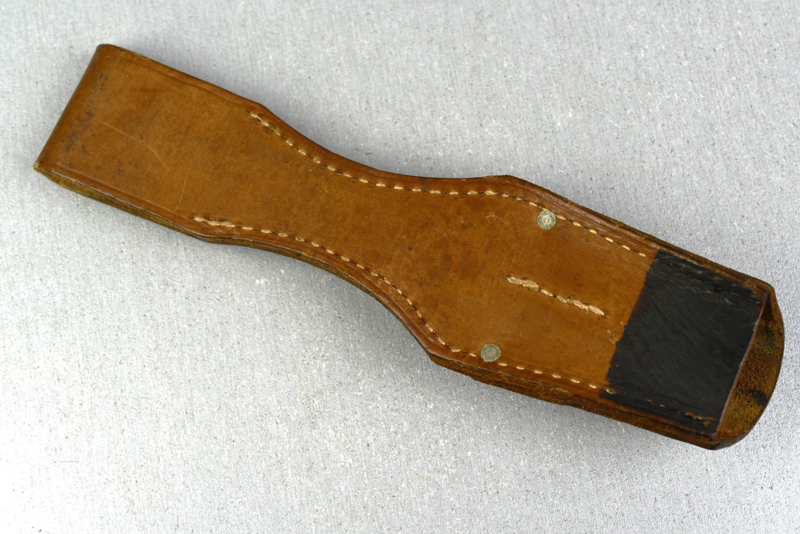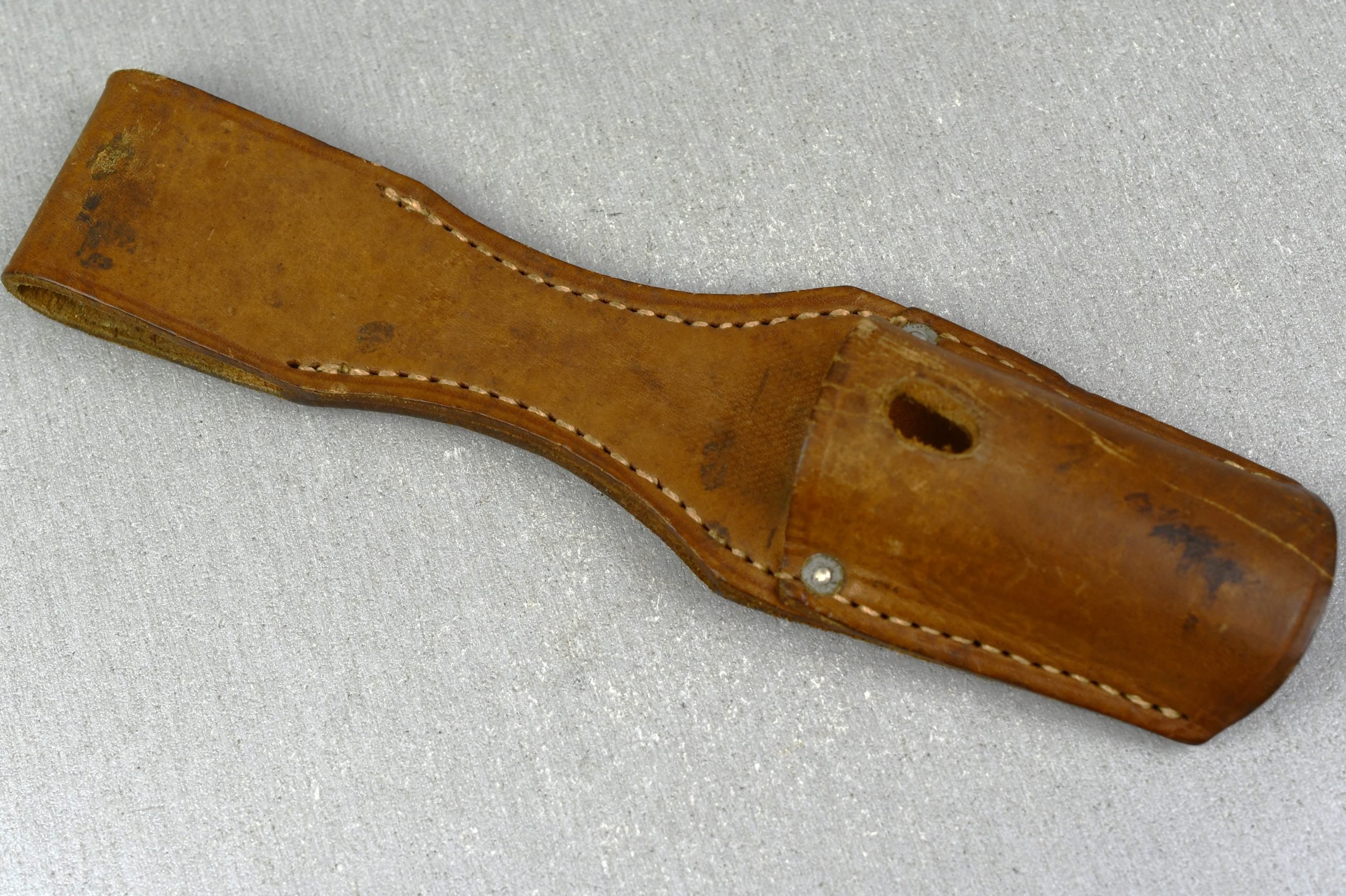 Beautiful unworn K98 bayonet frog in brown leather. Void of markings. The leather still retains its original factory brown color and has not been died black.