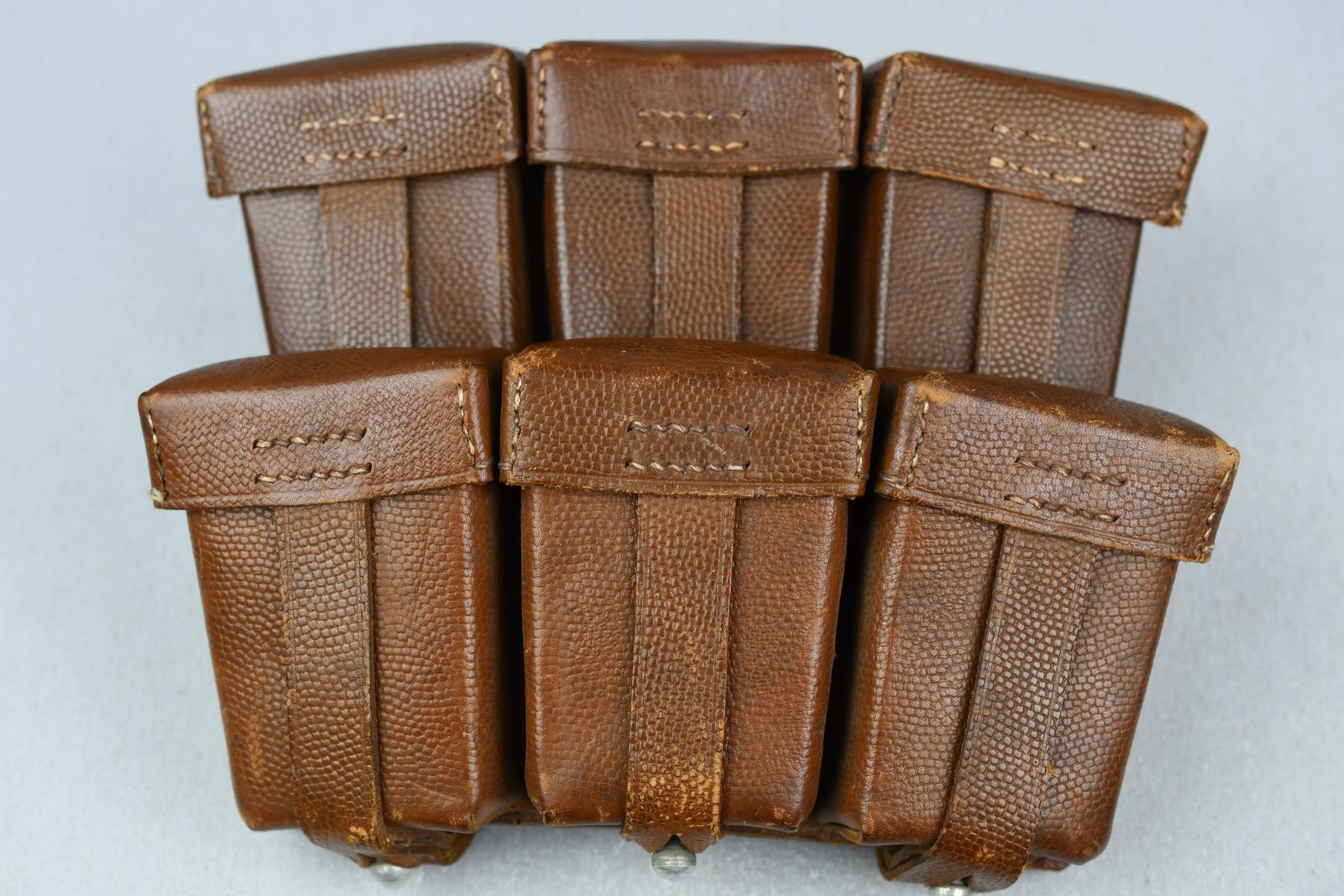 RARE matching set of brown leather K98 ammunition pouches by C. Budischowski Wien 1939