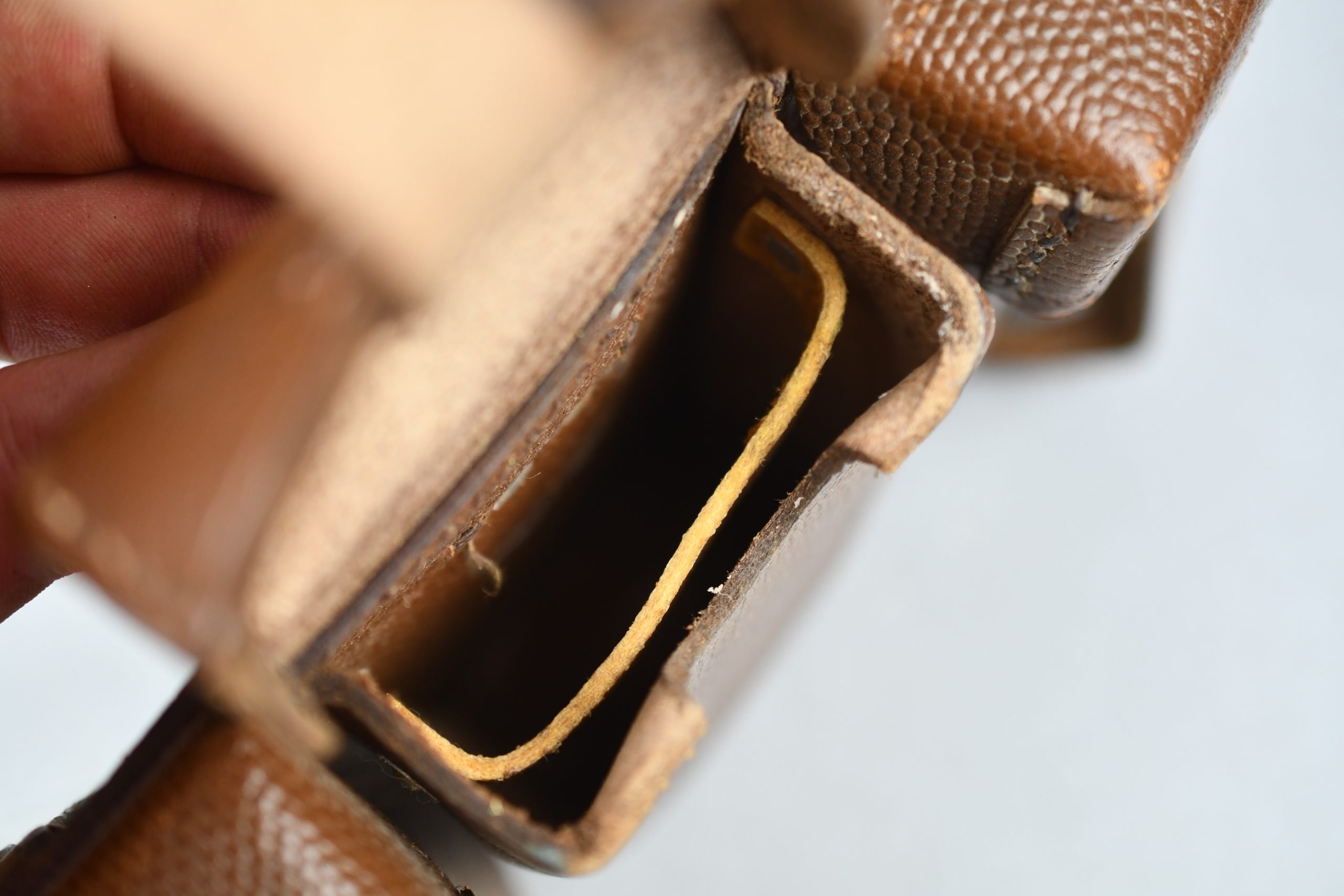 Genuine unissued 'MINT' set of brown leather K98 pouches in excellent condition. These could either serve on a Luftwaffe and/or tropical 'Afrikakorps' display. Spacers are intact. Maker marked by C. Budischowski Wien, dated 1939. Hard to find a matching set of pouches, and even harder is this brown color!