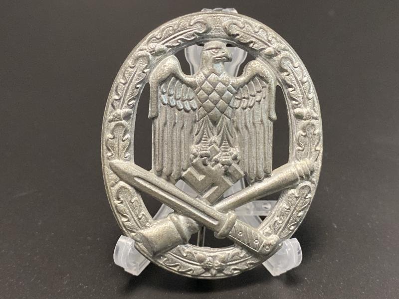 Original late production General Assault Badge made by Alois Rettenmeier. Nice uncommon piece with good finish. Complete with correct factory applied hardware on the reverse.