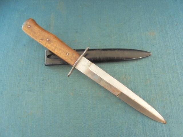 These knives were issued to Luftwaffe pilots, aircrew, and paratroopers, with this one having a 6.25' (Shortened) and stamped with an acceptance mark 5The knife is 10.75' overall with a steel guard, hardwood grip, and its original scabbard with the three prongs S/n 03104Price includes UK delivery
