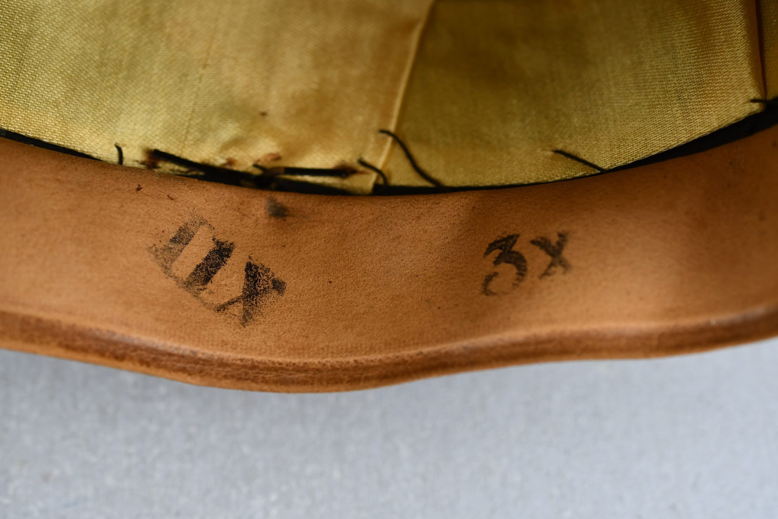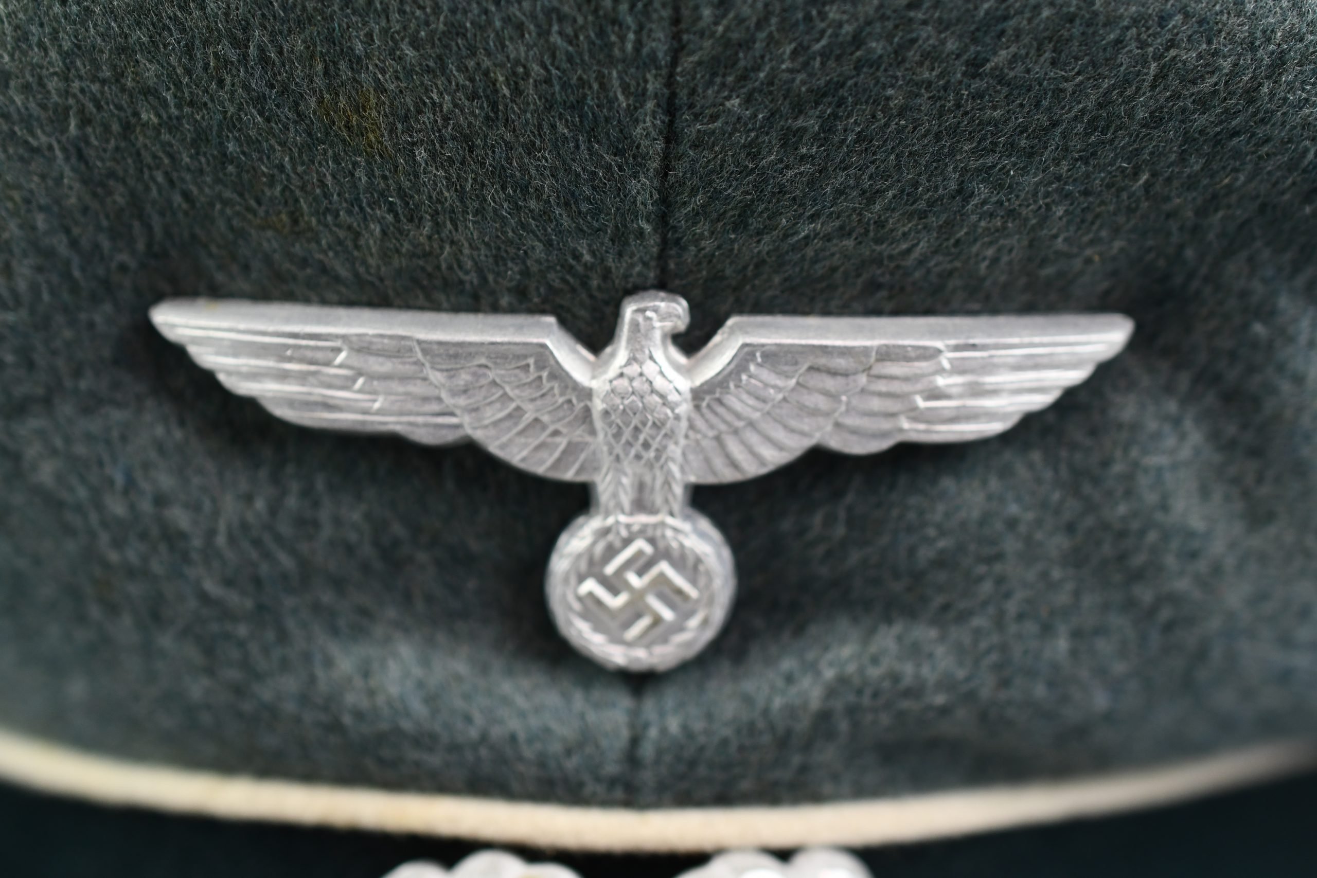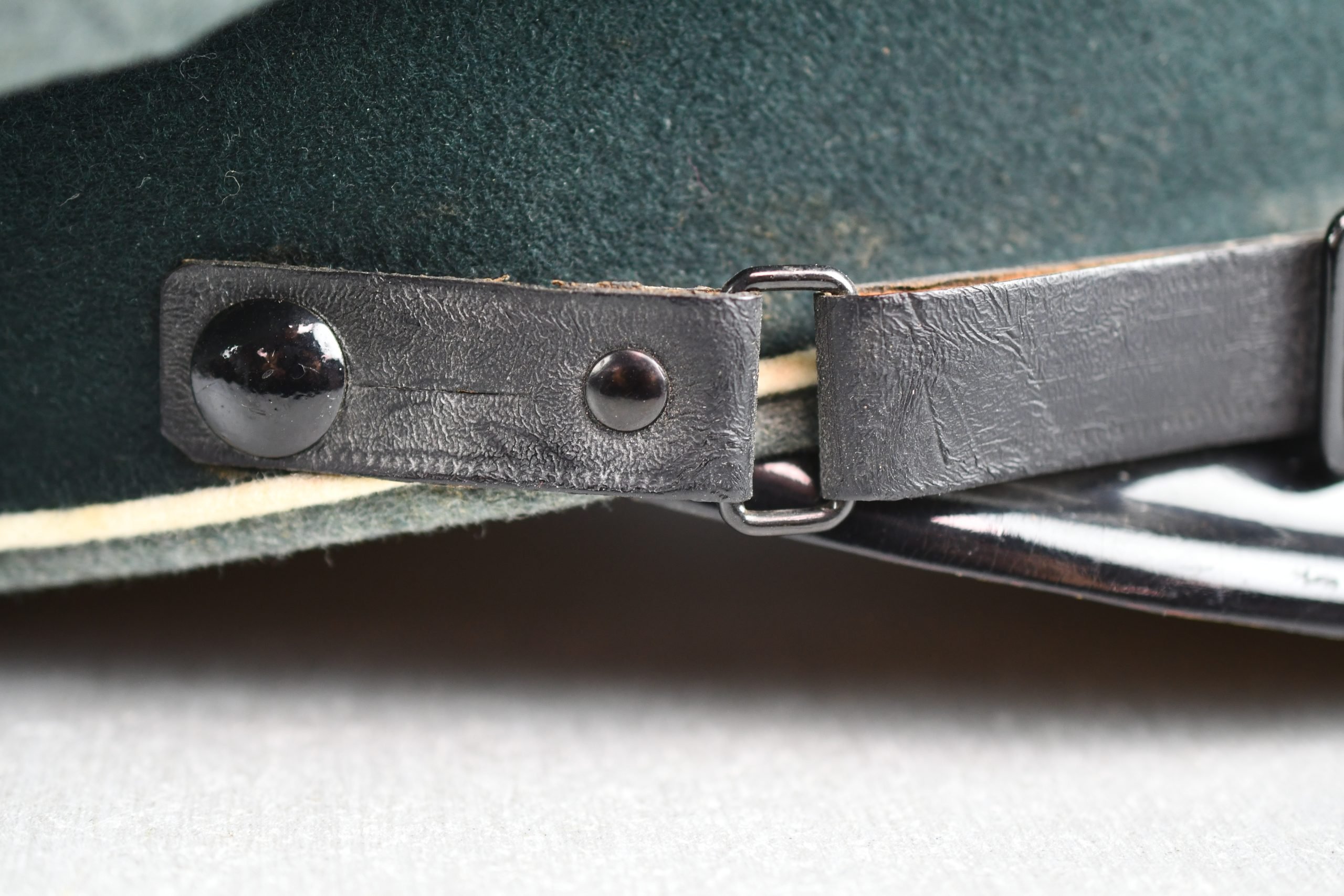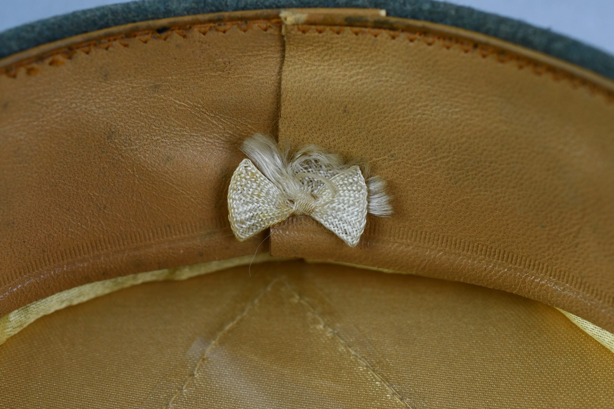 Beautiful army infantry visor for enlisted men in unworn β MINT β condition. Void of damages. White infantry piping surrounds the cap and looks bright. A set of early aluminium national insignia is period pierced through the front of the cap. Both eagle and cocarde show matching patina and nice details. The liner is complete with its sweatband. The celluloid sweat diamond is still present and shows manufacturer mark of Karl Schnitt Marburg-Lahn. Size +-57. Beautiful infantry cap!!