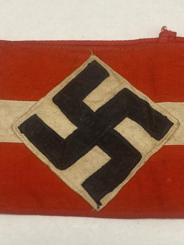 Original Third Reich Hitler Youth armband manufactured out of cotton. Nice worn piece.