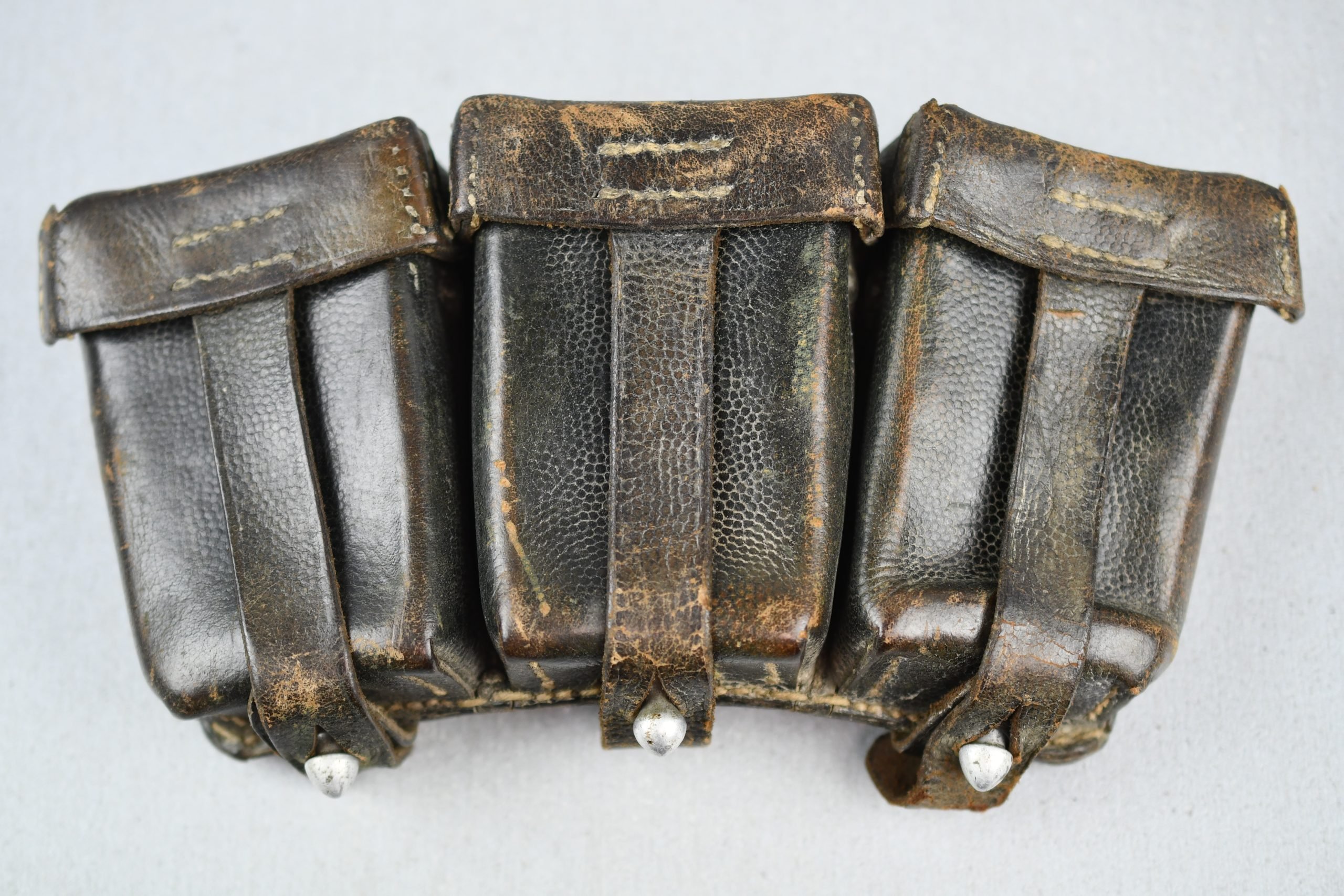 Honest and light worn Wehrmacht/SS K98 ammo pouch in good condition. Complete with spacers intact. Maker marked by Landes-Lieferungs-Genossenschaft Niedersachsen, Hannover dated 1939