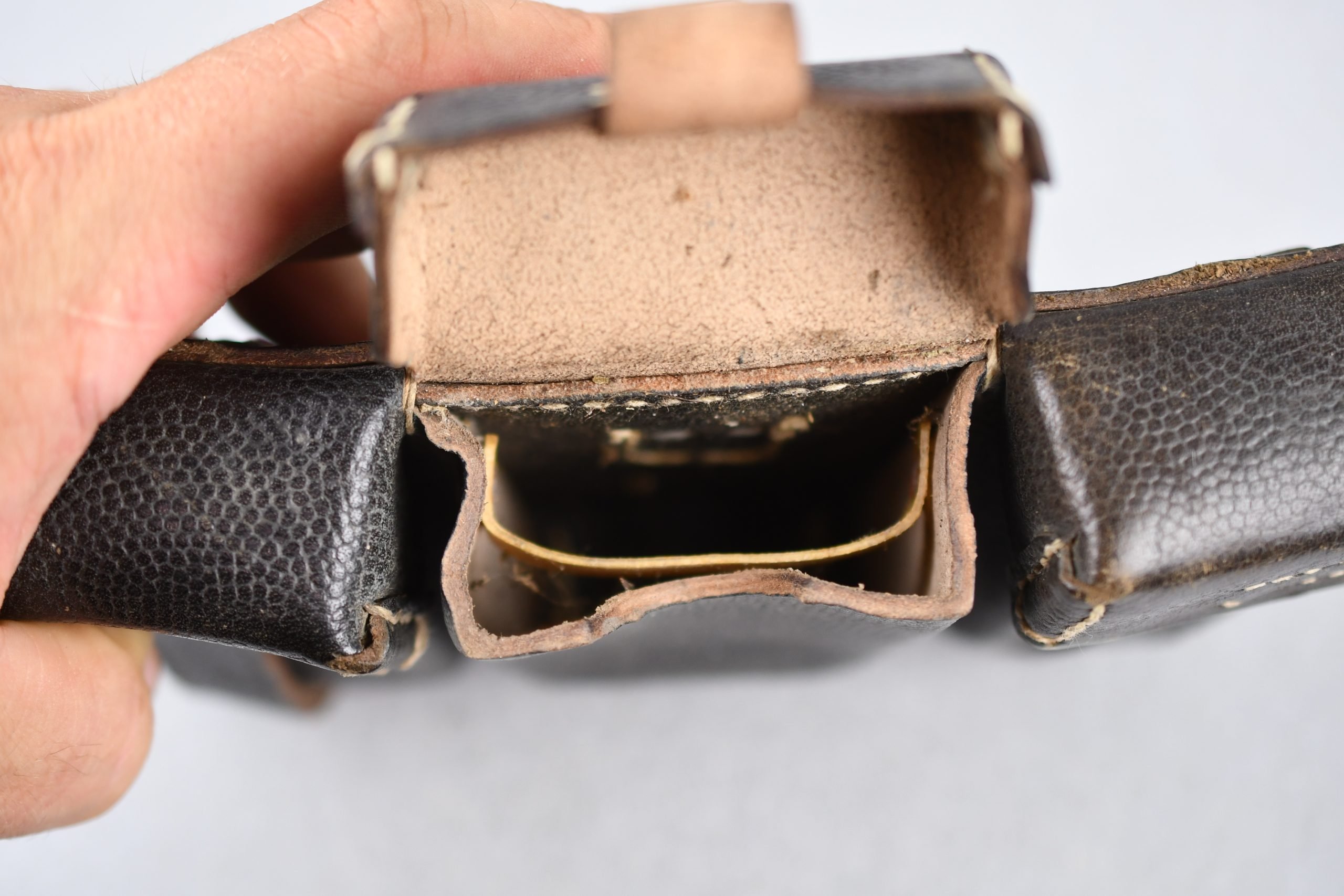 Honest and light worn Wehrmacht/SS K98 ammo pouch in good condition. Complete with spacers intact. Maker marked by bdt (Salewa, Lederwarenfabrik G.m.b.H., MΓΌnchen) dated 1941.