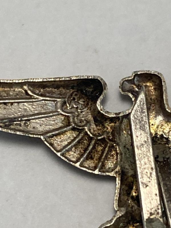 Original Kepi eagle as worn by members of the SA and SS. Maker marked M1/15 on the reverse. Both pins present.