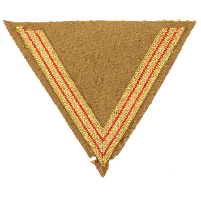 NSDAP Old Fighters Honour Chevron (Ehrenwinkel fΓΌr 'Alte KΓ€mpfer'). The Honour Chevron Old Fighters was authorised by Adolf Hitler in February 1934. All members of the SS who had joined the Allgemeine-SS, the NSDAP or any other party organisation prior to 30 January 1933 were entitled to wear the insignia. The NSDAP type chevron is mounted on political brown wool, there is some minor moth damage. Rare original sleeve patch in good condition!
