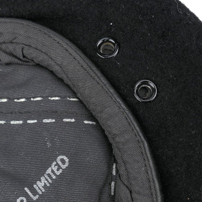 British Royal Armoured Corps Beret. Black woolen construction beret with two metal ventilation grommets. Original tie-adjustment string is included. The beret is nicely maker marked by 'Kangol Wear Limited' and dated 1945, the beret is marked with War Department Depot Code 'Z' indicating 1945 as well. The beret is a size '6ΒΌ'. The beret is nicely maker marked by 'Kangol Wear Limited' and dated 1945, the beret is marked with War Department Depot Code 'Z' indicating 1945 as well.