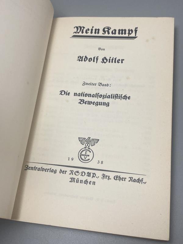 Original pair of Adolf Hitlers Mein Kampf Band 1 and 2. Both books printed 1938 and complete with dust covers. Some minor scuffing however nothing major. Both are paperback types.