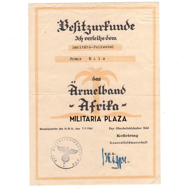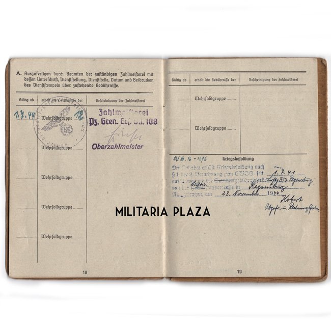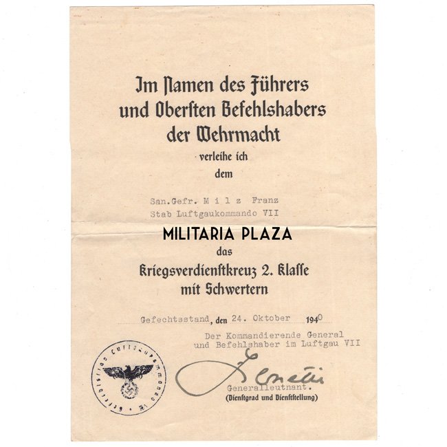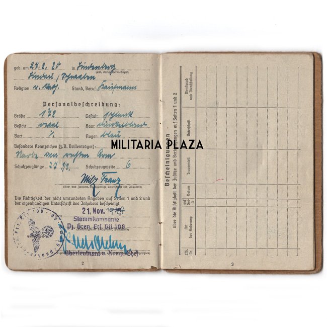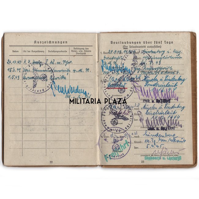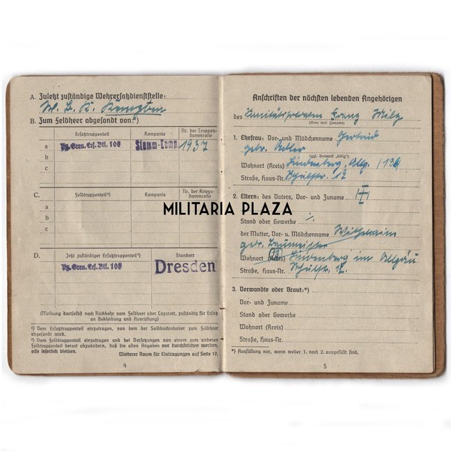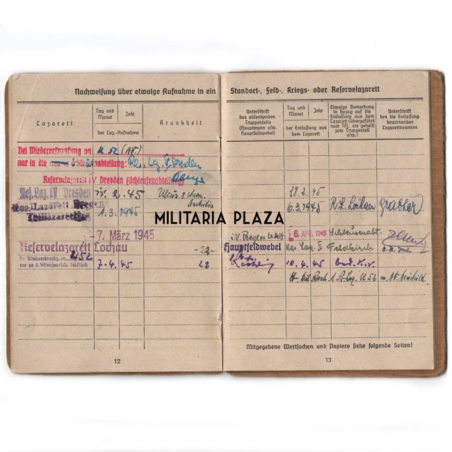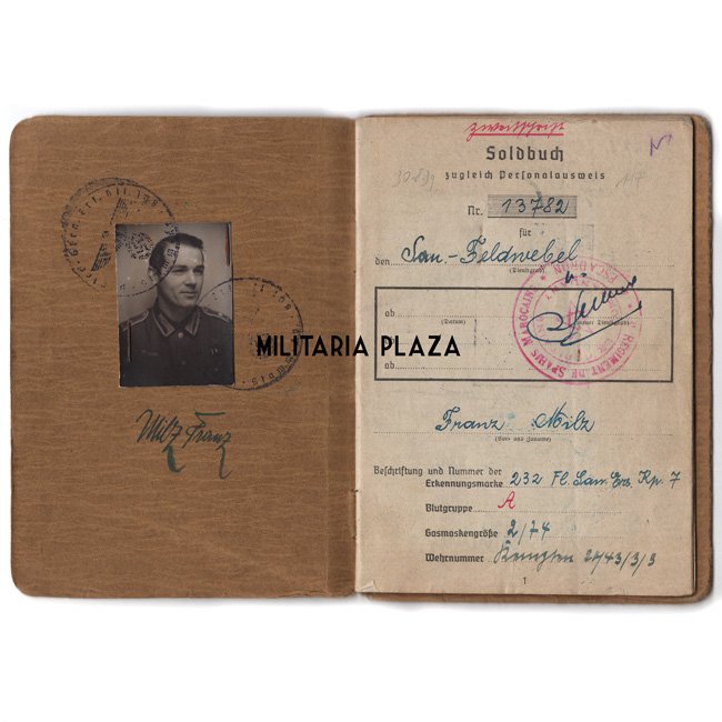 WH (Heer) document grouping belonging to SanitΓ€ts Feldwebel 'Franz Milz'. The grouping is consisting of 2 of his award documents (Urkunden) and his Soldbuch.