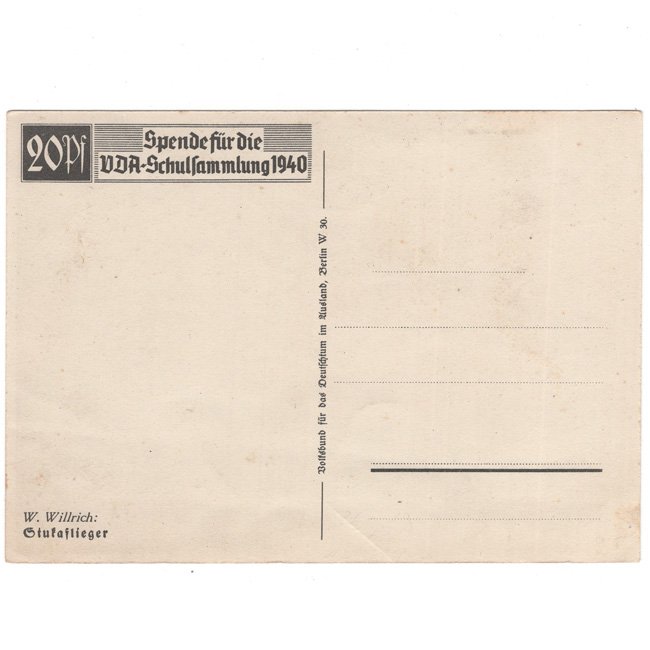 This is a nice original period 'Willrich' postcard 'Stukaflieger' showing a Luftwaffe pilot. This propaganda postcard was published by the 'Verlag: Volksbund fΓΌr das Deutschtum im Ausland' in Berlin W 30. The postcard measures approximately 15 x 10,5 cms in size and is in good condition. Nice original postcard!