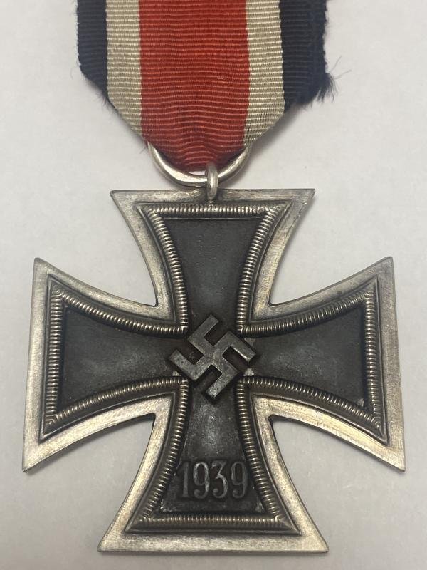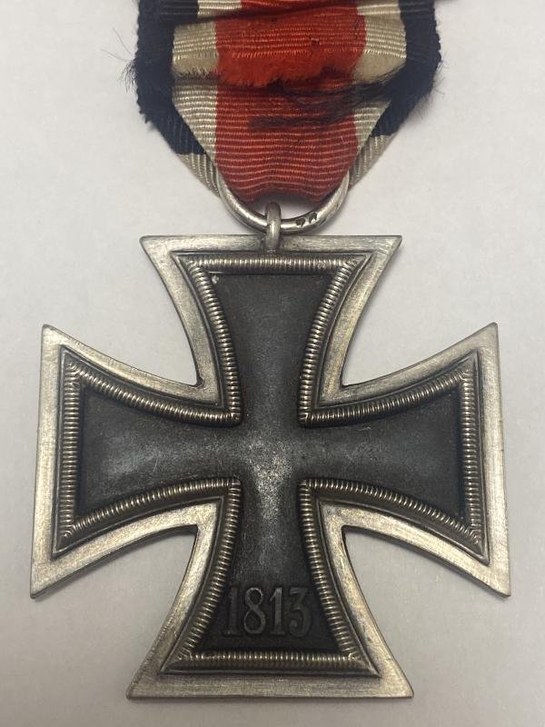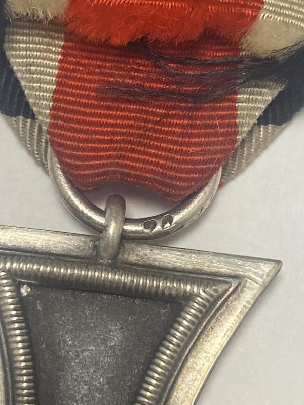 Original WW2 Iron Cross Second Class maker marked '24' for Arbeitsgemeinschaft Der Hanauer Plakettenhersteller of Hanau. Award in good condition complete with ribbon.