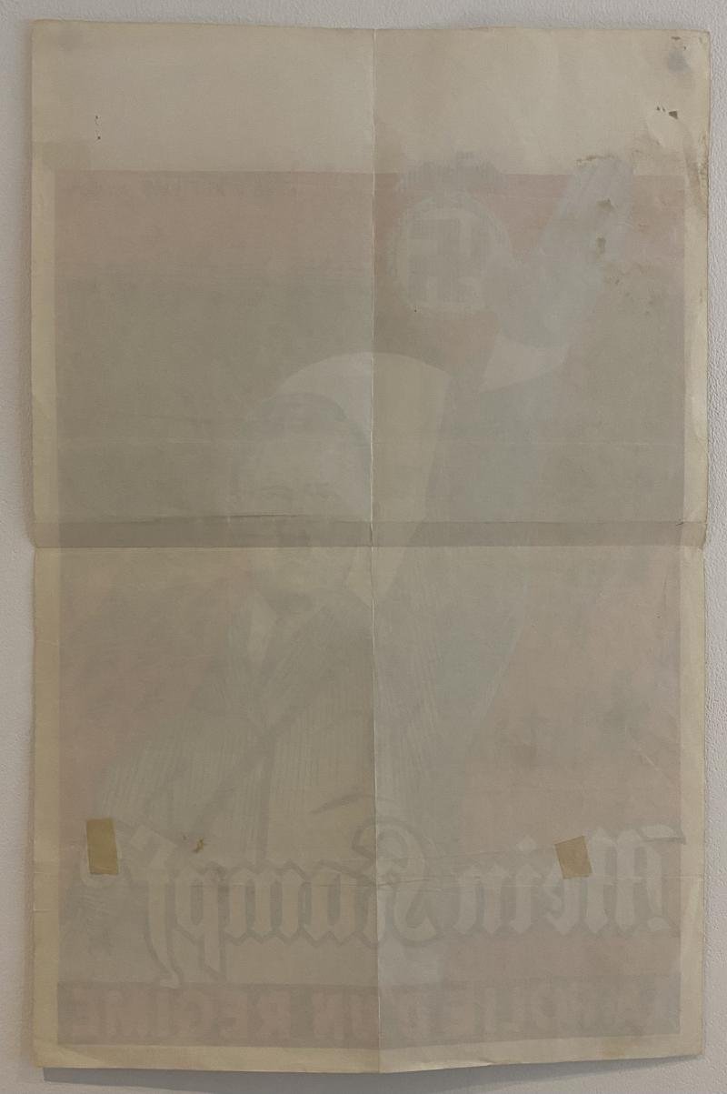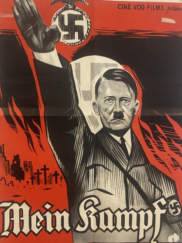 Original poster from the 1960 film 'Mein Kampf' for Belgian cinema. Post in good shape with bold colours. Some creases where it was folded. No rips or repairs. Approx 55cm X36cm. Nice displayable size.