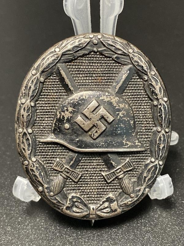 Original third grade black wound badge produced by Overhoff. Some wear to the highest parts of the award.