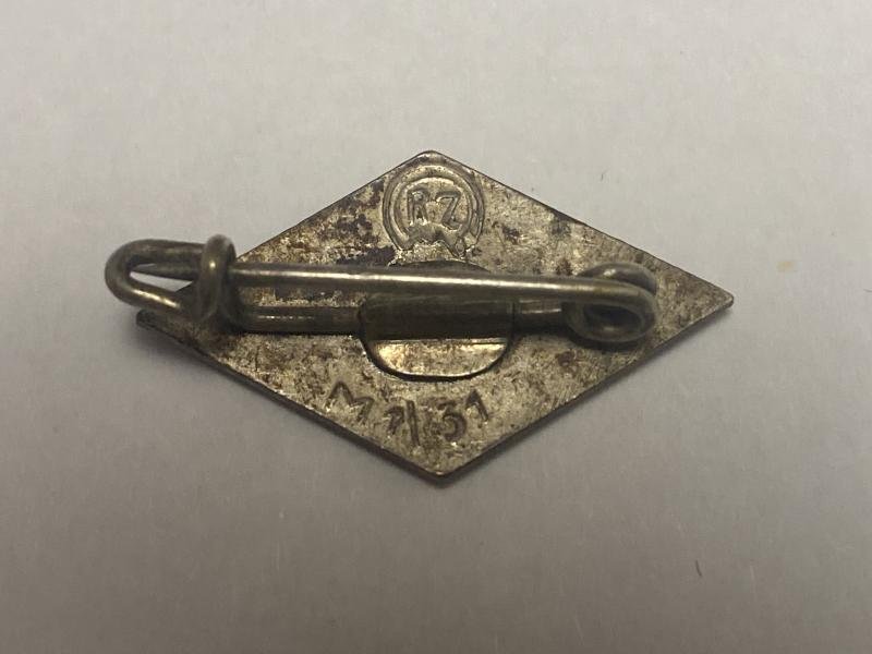 Original Hitler Youth Enamelled badge made by M1/31 Karl Pfohl. A reasonably rare maker of these badges. Perfect undamaged enamelling.