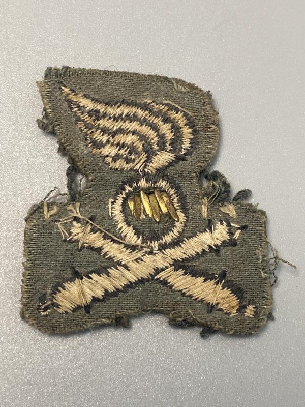 Original 132nd Cloth Cap Badge. Embroidered on grey wool. Issued piece with evidence of wear.