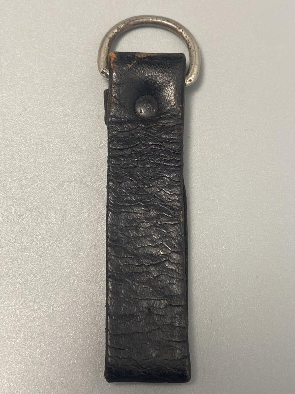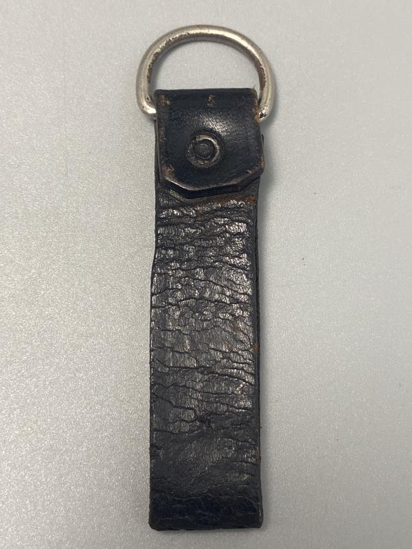 Original Black leather cross strap D-Ring for Poltical or SS uniform. No stamps present. Nickel plated ring.