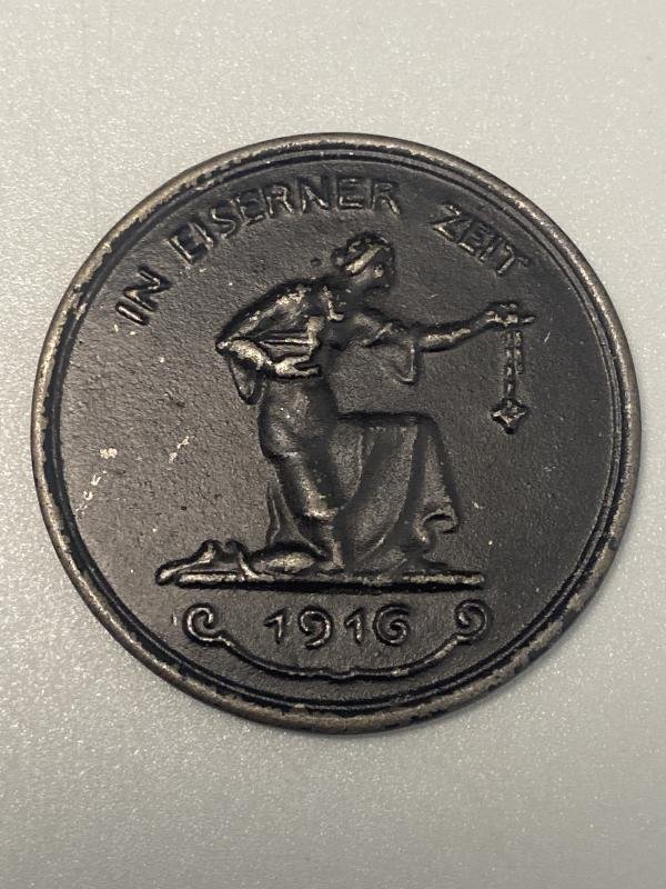 Original WW1 German medallion issued to those who traded their gold in to help the war effort in 1916. Good amount of finish remaining on the Medallion. Approx 40mm.