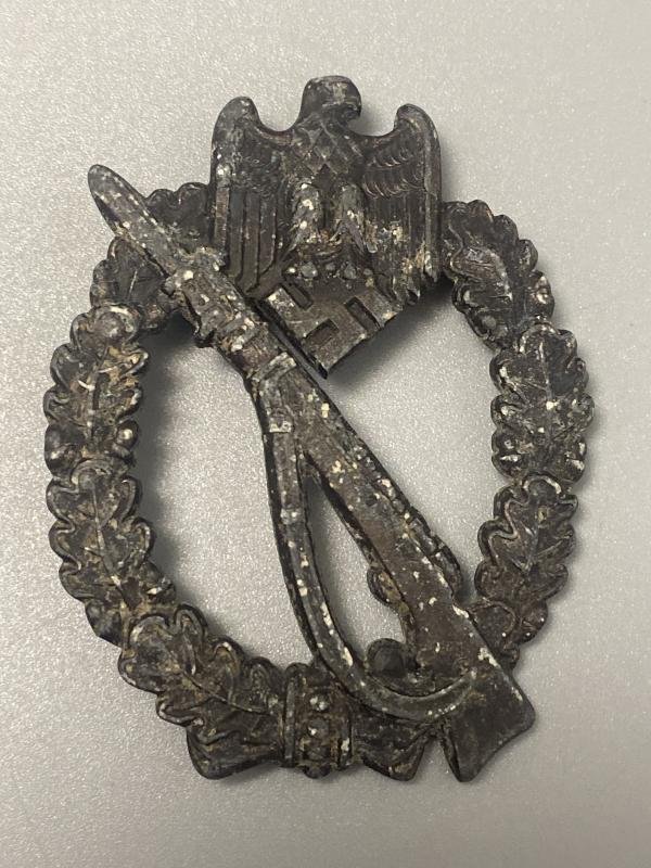 Original ground dug JFS manufactured Infantry Assault Badge. In reasonably good shape, no pin on the reverse. Hook remains in place.