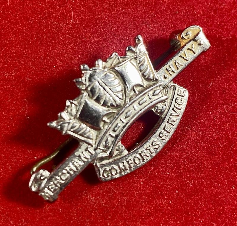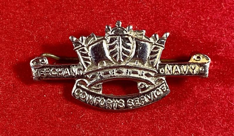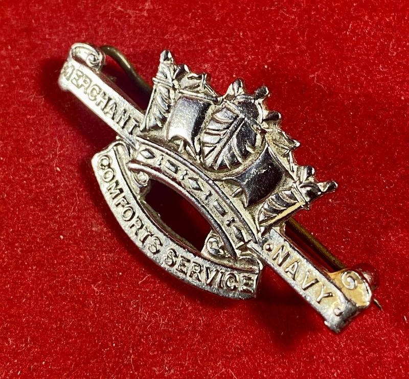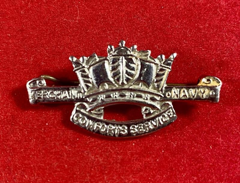 Here on offer is a great example of a WW2 Merchant Navy Comforts Service, volunteer war workers badge.This type has a chromium plated finish bearing a Naval Crown and the words:MERCHANT NAVY COMFORTS SERVICEOn the reverse it retains its original pin and 'C' clasp.The work of the 'Merchant Navy Comforts Service' during the second world war was to provide parcels of warm clothing, some hand knitted by 'M.N.S.C.' volunteers, to merchant seamen on being rescued from icy waters after their ship had been sunk.It measures 1.5' (3.8cm) wide and weighs 4.8g.Please see my pictures for the details of the condition, which complement this description.Please see my TERMS OF BUSINESS regarding Deliver Charges and Insurance regarding additional insurance cover, should you require it, BEFORE the item is dispatched.The responsibility lies with the customer to check with your Customs restrictions that this item can be imported into your country.