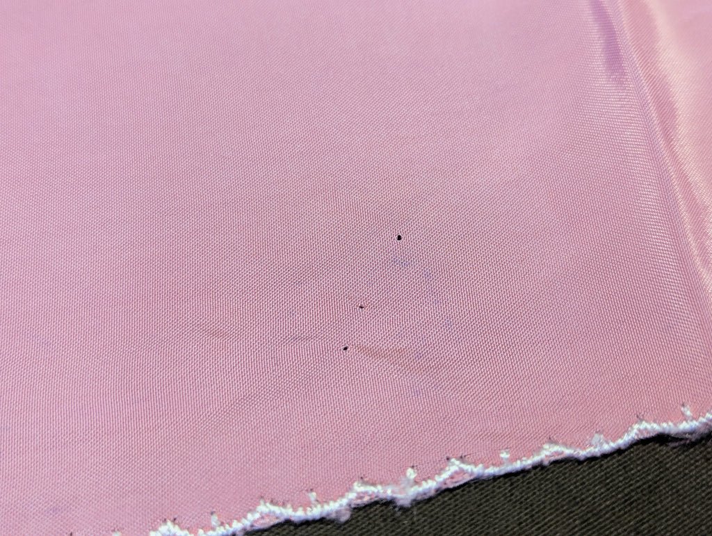 Small pink sweetheart hankie with embroidered armored division insignia. There are a few small holes which appear to be from a staple or pin. This isn't too bad and would probably relax out of the fabric.