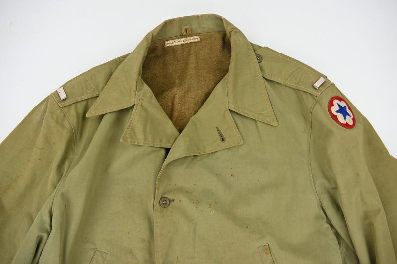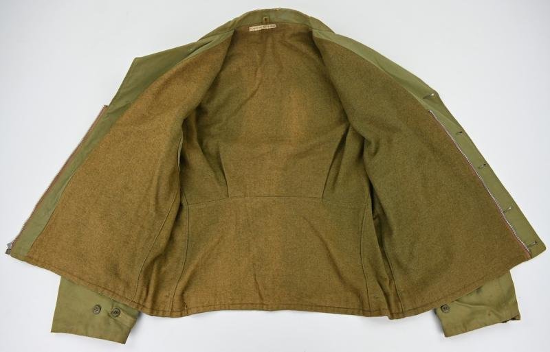 In a nice used condition a US WW2 M41 / M-1941 Field Jacket.The jacket comes in a very good mannequin size 42 and has still the functional Talon zipper.Also is the jacket marked to the former owner inside the lining indicating use by James Carroll Elgin.James was awarded captain in 1944 and for that a 1st Lieutenant as the jacket indicates.The sleeve comes with the original sewed Army Service Forces patch attached.James was a member of the 124th Station Hospital in England.The 124th Station Hospital was a U.S. Army medical unit that served in the European Theater of Operations during World War II, providing medical care to sick and wounded American and British personnel in fixed facilities. While specific unit histories are extensive, the 124th likely played a crucial role by operating a 750-bed hospital in Newton Abbot, Devonshire, United Kingdom, from at least September 1944 onwards.A very nice m41 jacket!