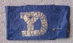 Original period manufacture. Blue wool felt armband with a printed YD in gold, typical age and wear. When laid out full length it measures 13 inches in length.