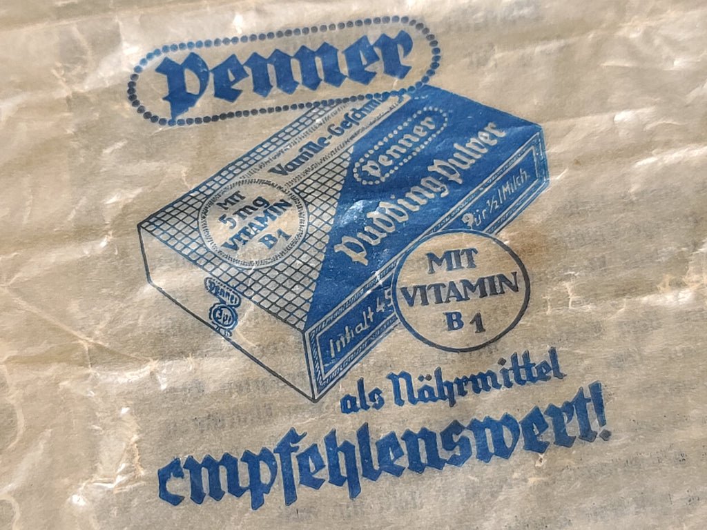 Original envelope for vanilla flavor pudding powder mix. It has some wrinkles and general wear.