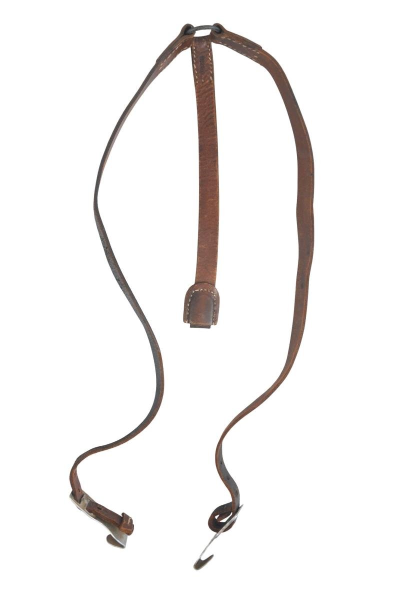 A pair of equipment Y straps which are marked for issue to the Kriegsmarine with eagle & swastika surmounting an 'M' for Marine.Black leather straps with aliminium hooks & steel belt hook to rear , typical of midwar construction. RB number to rear.No damage & good condition.