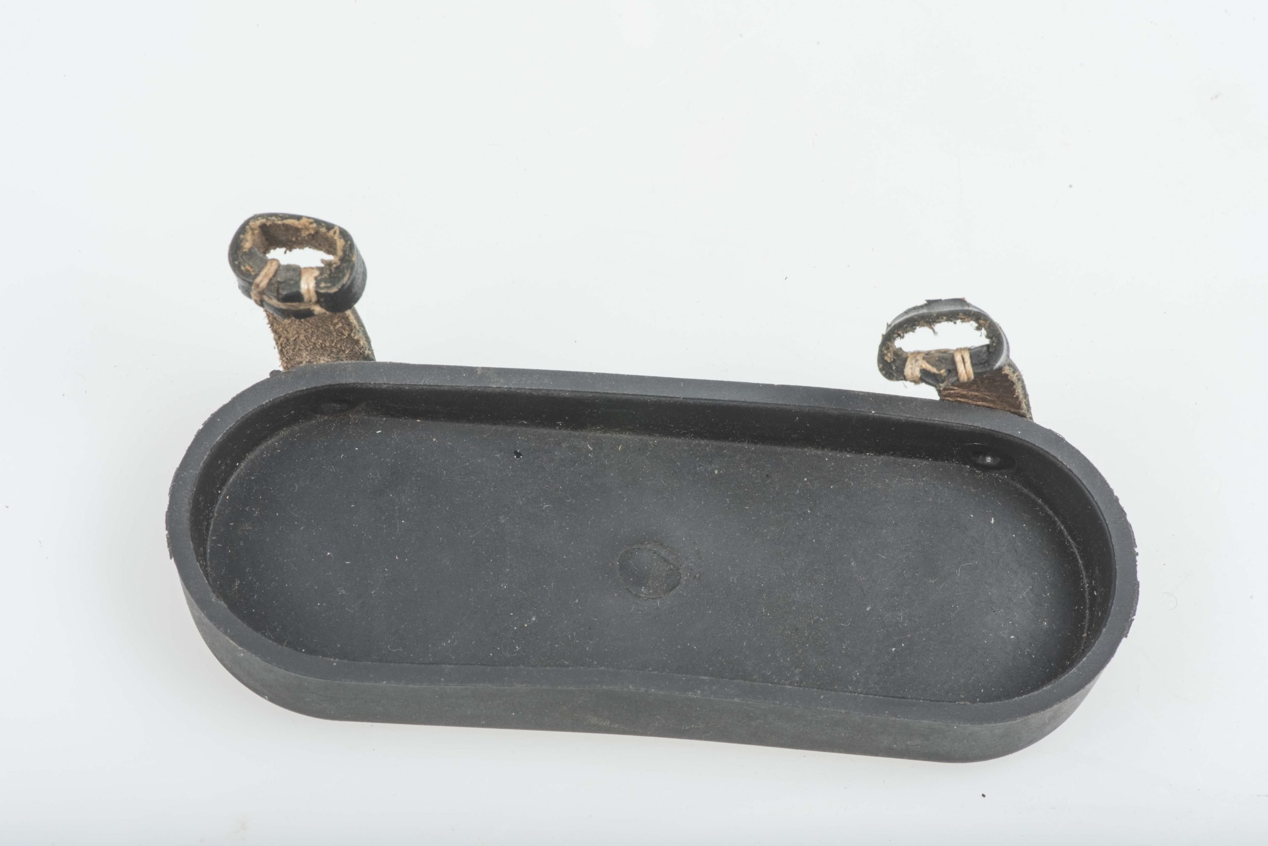 Excellent rubber rain cover orOkularschutzin good easily attachable condition with supple leather parts. Hard to find as a spare for the tan coloured and the very rare BakeliteDienstglasbinoculars in very good condition!