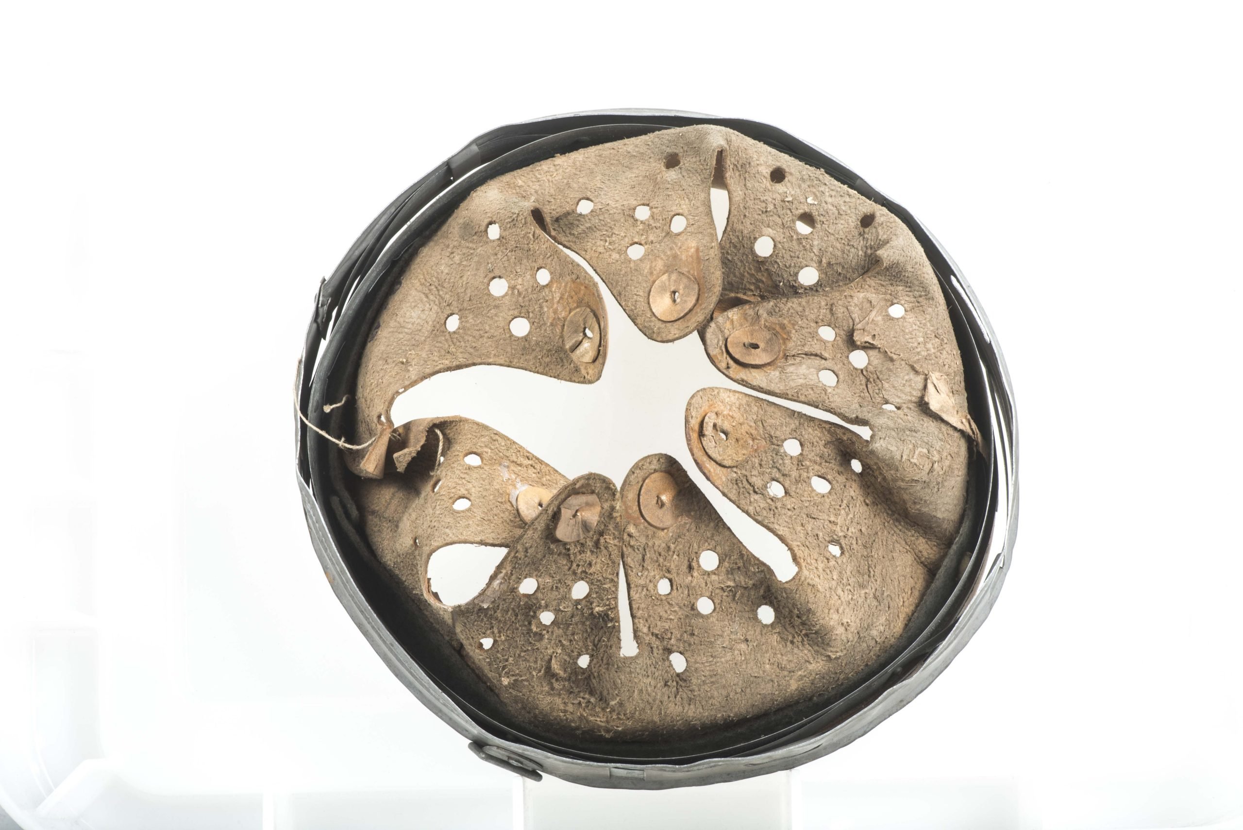 German helmet liner marked RBNr. 0/0256/0038 1943 size 66/58 in good condition. Textbook late war spliced liner example.